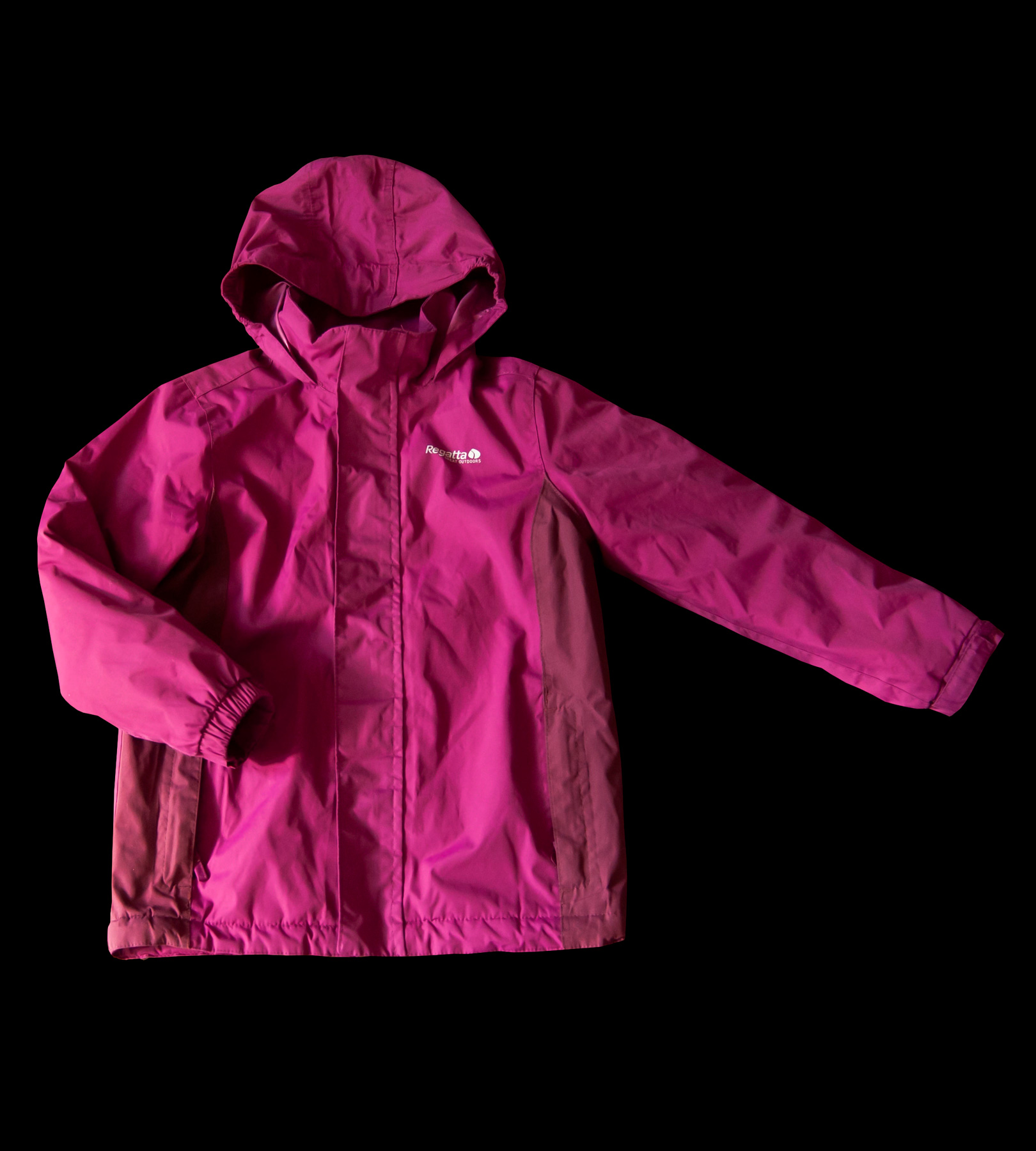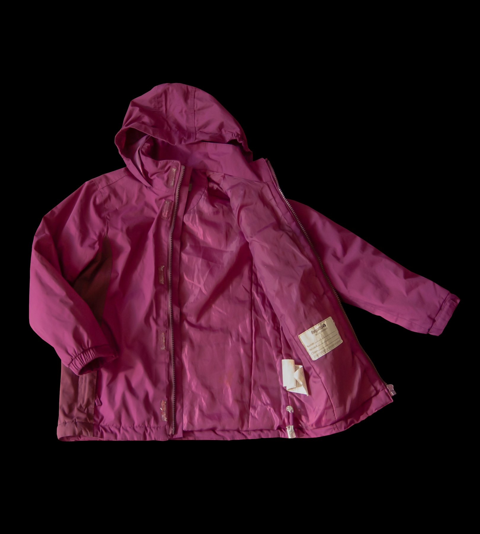 Přechodová jarní/podzimní bunda zn. REGATTA, vel. 128 (7-8 let). Dvojí zapínání, na zip (u krku krytý légou) a vrchní klopa na suchý zip. Vpředu dvě uzavíratelné kapsy na zip. Celá bunda je uvnitř lehce zateplena vatelínem, včetně rukávů, a má podšívku ze silné lesklé šusťákoviny. Kapuce je napevno součástí bundy, ale dá se schovat do límce, ten se zapíná na suché zipy. Barva je třešňová, s vínovými pruhy na bocích, vepředu stříbrné logo značky "Regatta". Slušivá, lehká. TOP stav jako nová, téměř nenošená, čistá, neopraná, parádní. Připravená k okamžitému odeslání.