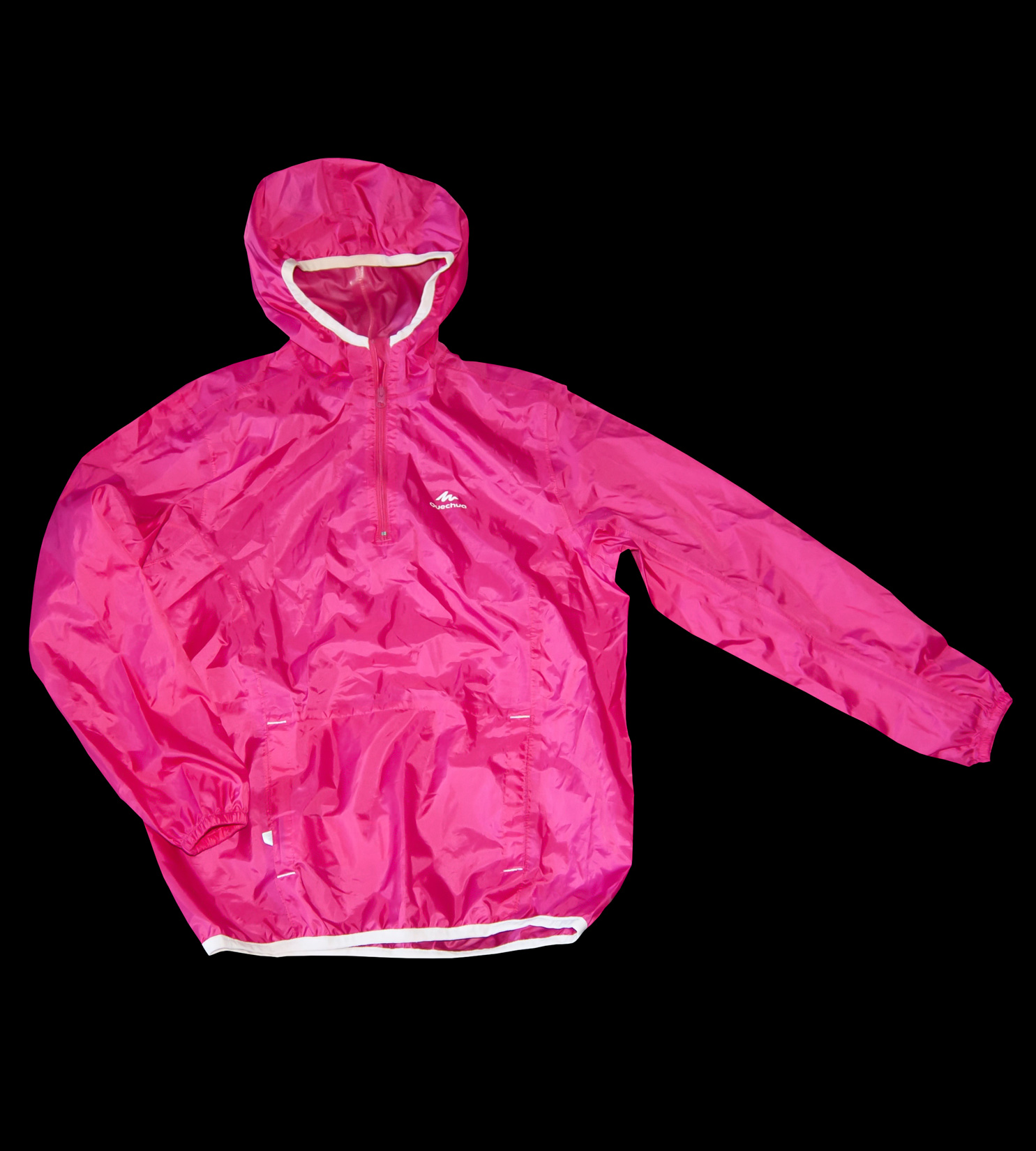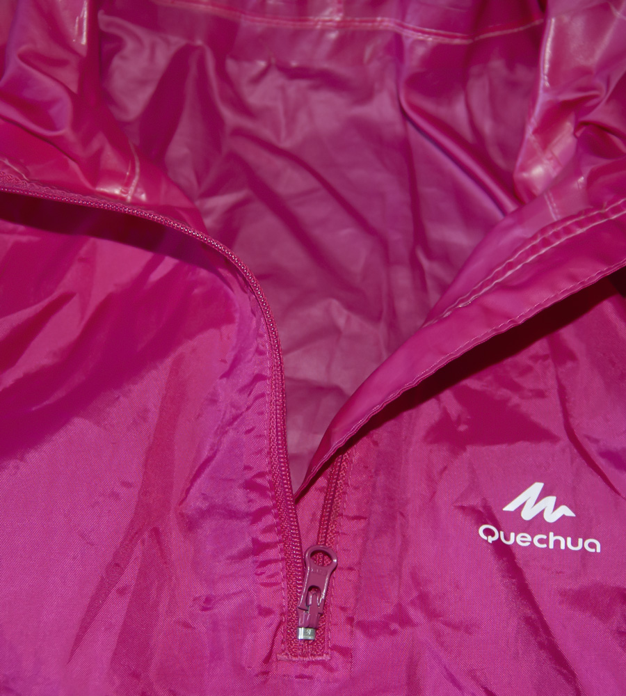 Nepromokavá bunda zn. QUECHUA, vel. 134/140 (8-10 let). Zapínání do 1/3 na zip, u krku krytý légou. Vepředu jedna klokaní kapsa, z obou stran uzavíratelná na suché zipy. Bunda nemá podšívku, zevnitř je pogumovaná (proti dešti). Je opravdu slaboučká a lehoučká, spíše jako pláštěnka, dá se složit a všude se vejde. Kapuce je součástí bundy, přišitá napevno. Bunda i rukávy jsou zakončeny do nabírané gumy. Barva je v odstínu tmavé růžové, s bílými doplňky (lemy a logo značky). Top stav, bez vad, nenošená jako nová. Připravená k okamžitému odeslání.
