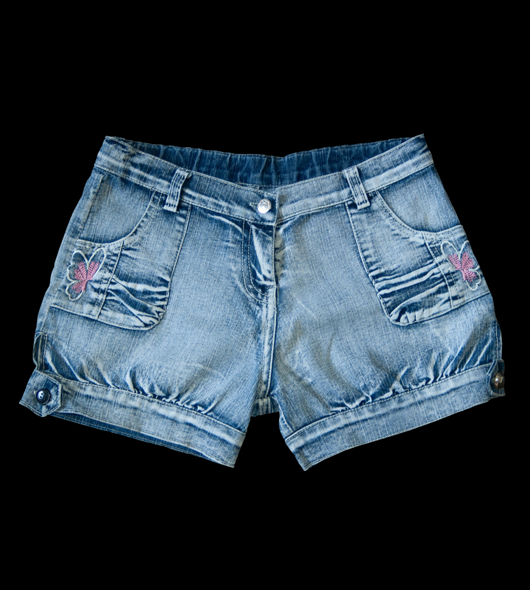 Kraťasy, vel. 158/164 (12-14 let). Zapínání na zip a knoflík, v pase místo na regulační gumu (není součástí), vpředu dvě kapsy a vzadu též. Šmrncovně nabírané nohavice a kapsy, líbivý střih, suprové. Barva šedomodrá s efektem oprané džínoviny, na kapsách vyšité růžovobílé květiny či abstraktní motýli. Top stav, bez vady, připravené k okamžitému nošení.
