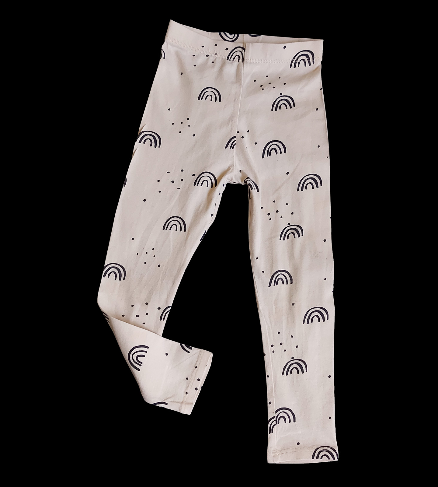 Legíny na podzimní dny zn. GEORGE, vel. 104 (3-5 let). Legíny jsou slabé, tenké, bavlněné v odstínu slonoviny (žlutobílá) s černým veselým vzorem, v pase širší guma. Legíny jsou téměř nenošeny, takže jako nové, ale mají dole na levé nohavici zezadu světle zelený odstín (není vůbec na první pohled vidět), proto zohledňuji v ceně. Připravené k okamžitému odeslání.