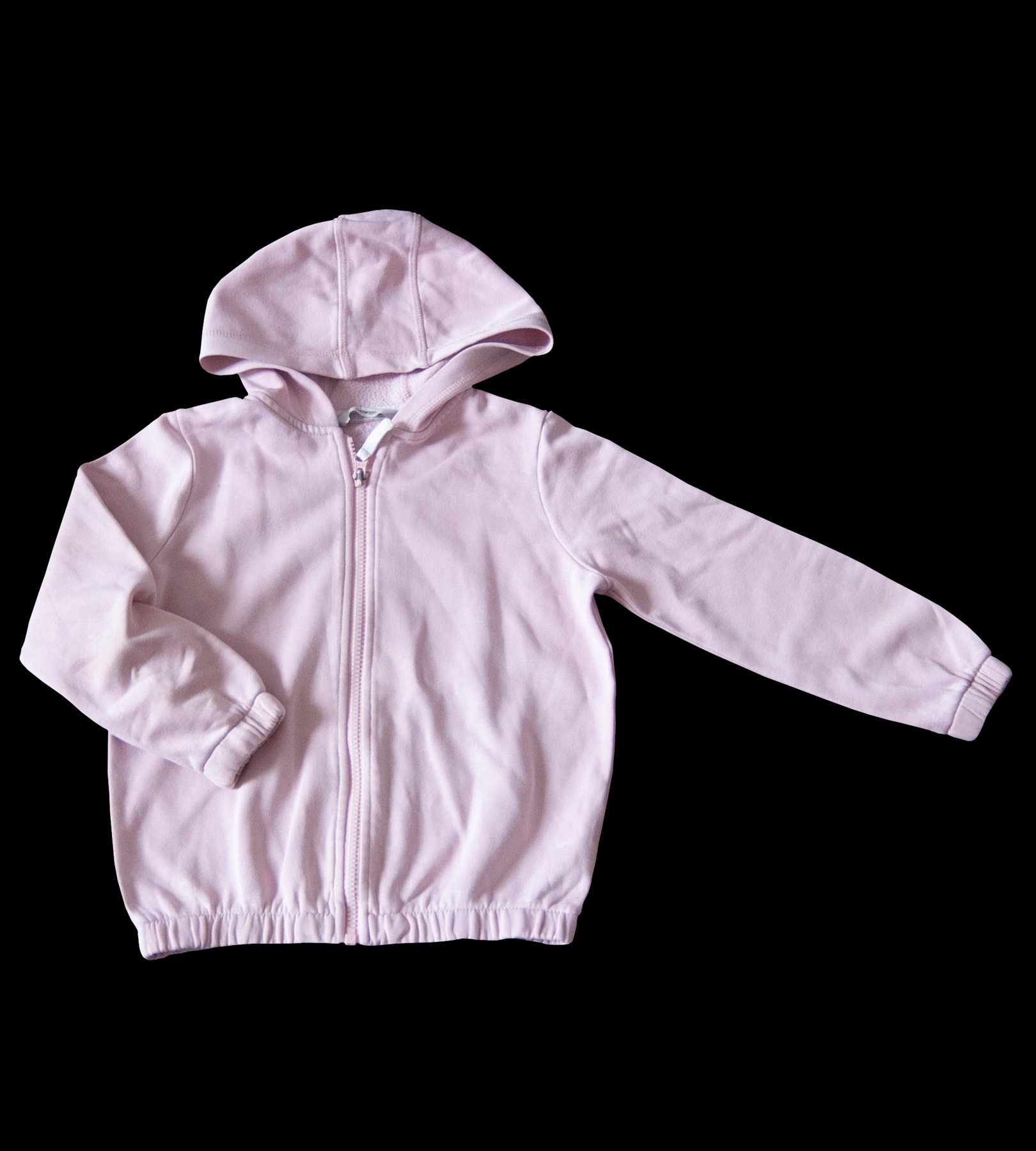 Mikina zn. GEORGE, vel. 122 (6-7 let). Rozepínací, zapínání na zip, bez kapes, s kapucí, jemně zateplena chloupkem. Zakončena je do nabírané gumy, což jí podtrhuje módní střih. Rukávy má též zakončeny do gumy. Jednoduchá, jednobarevná, v barvě lasturově růžové (světle růžové). Má na sobě flíčky, zohledňuji v ceně, na lítání po venku je suprová.