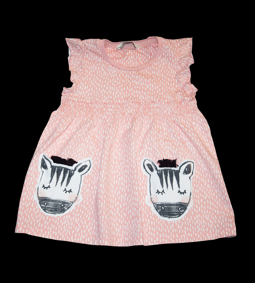 Letní růžové šaty, zn. GEORGE, vel. 98 (2-3 roky). Šaty mají kraťoučké volánkové rukávky, v pase mají širokou nabíranou gumu, ve spodní části jsou dvě kapsičky ve tvaru zebří hlavy. Jsou broskvově růžové v kombinaci s bílými ornamenty. Byly pár krát nošeny, top stav - bez vady. 100% bavlna, připraveny k okamžitému nošení.