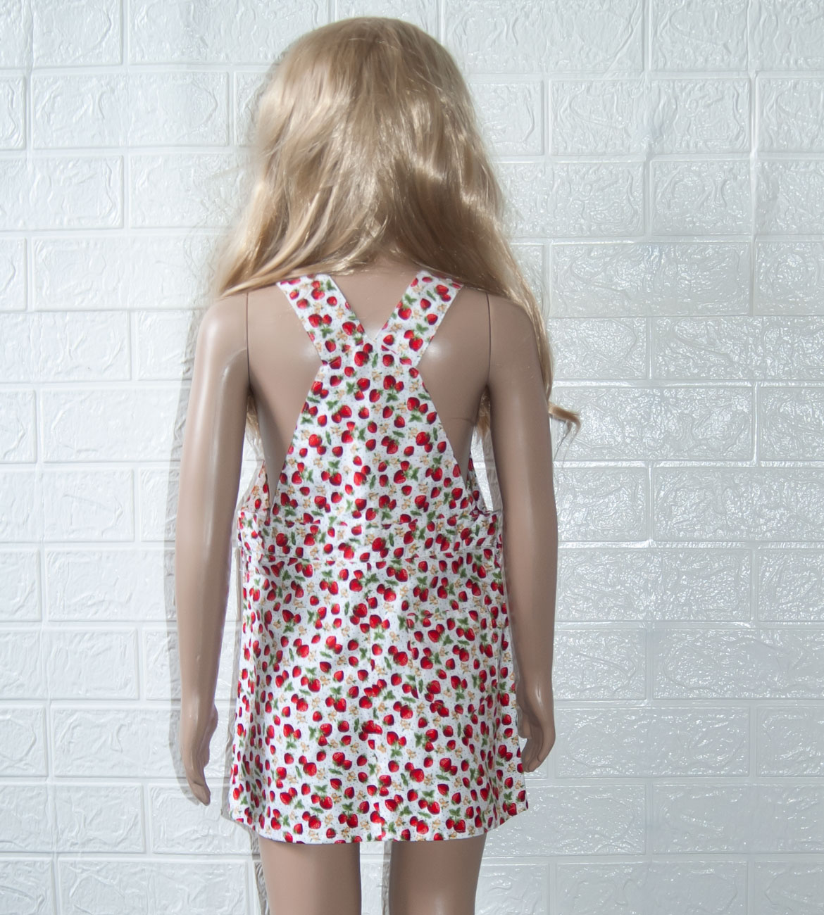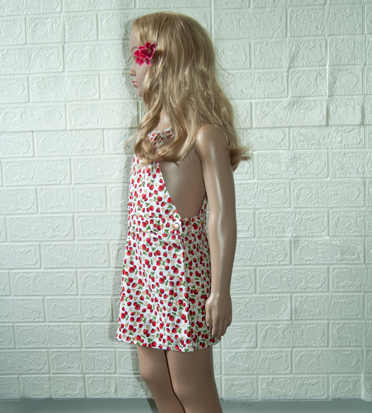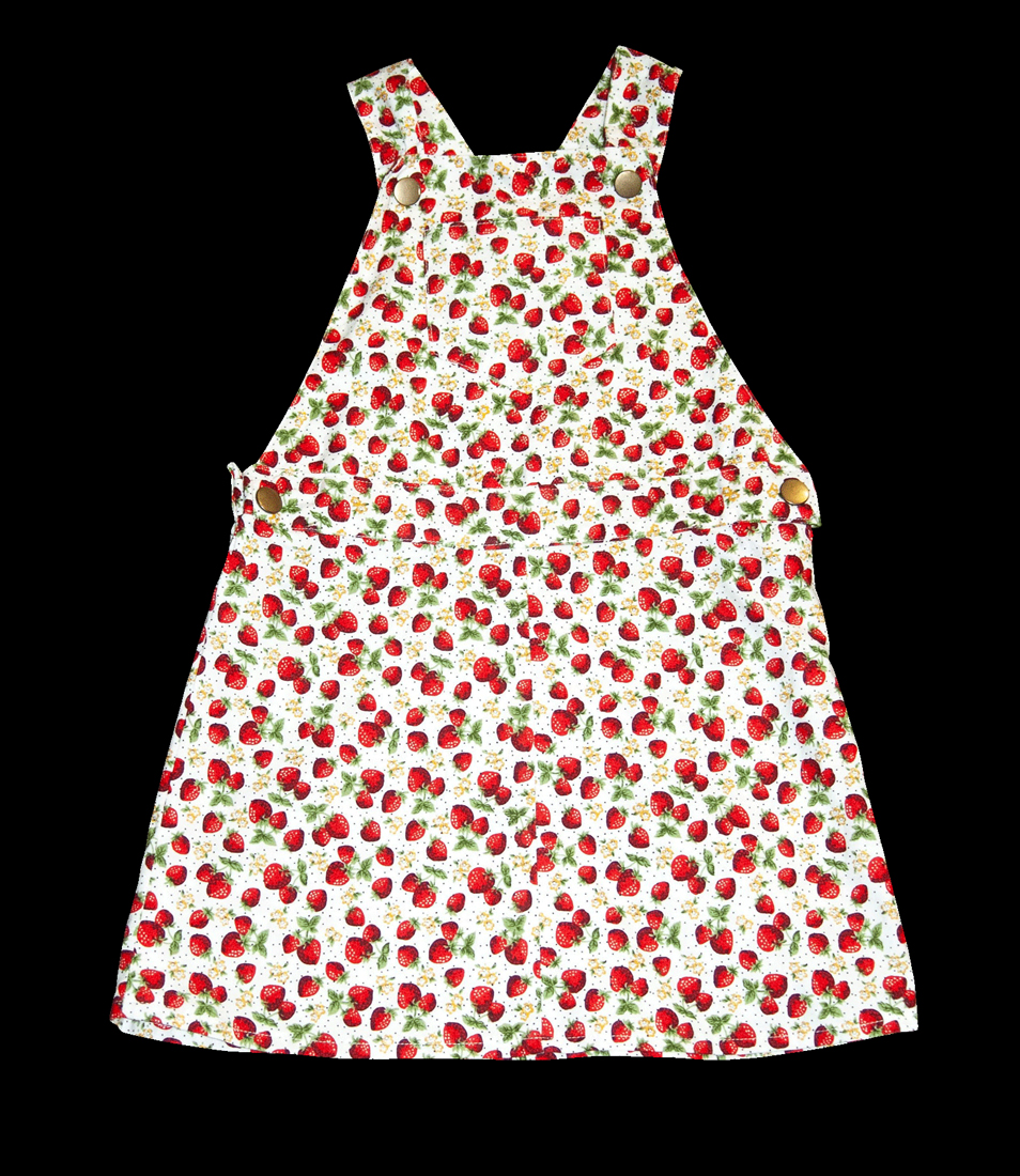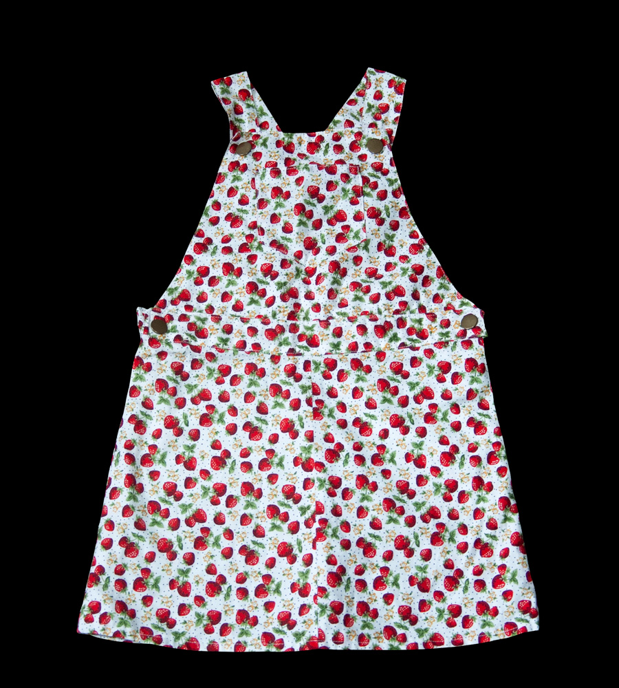 Jahodové šaty, vel. 104/110 (3-5 let). Šaty s laclem, vepředu na prsou kapsička a též ještě jedna vzadu. Kromě zapínání laclu ještě po stranách (na bokách) rozepínací na patentky. Jsou bílé, posety sladce červenými jahodami. Pro představu na fotce figurína holčička Elza (5 let; výška 110 cm; míry Elzy: obvod hrudníku 55,5 cm, obvod pasu 50 cm, obvod boků 60 cm). Byly asi jen 1x oblečeny, top stav, absolutně bez vady jako nové. Jsou bavlněné, 100% bavlna (plátno), moc příjemné v horkých dnech. Jsou připraveny k okamžitému nošení.