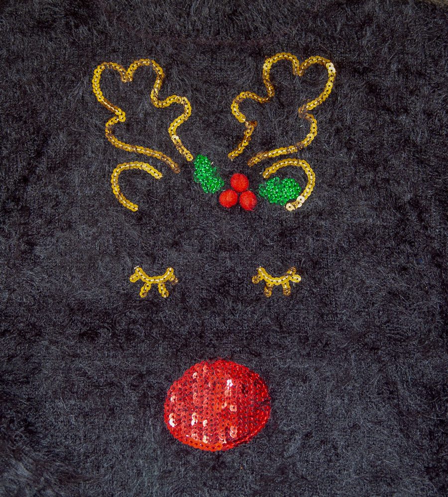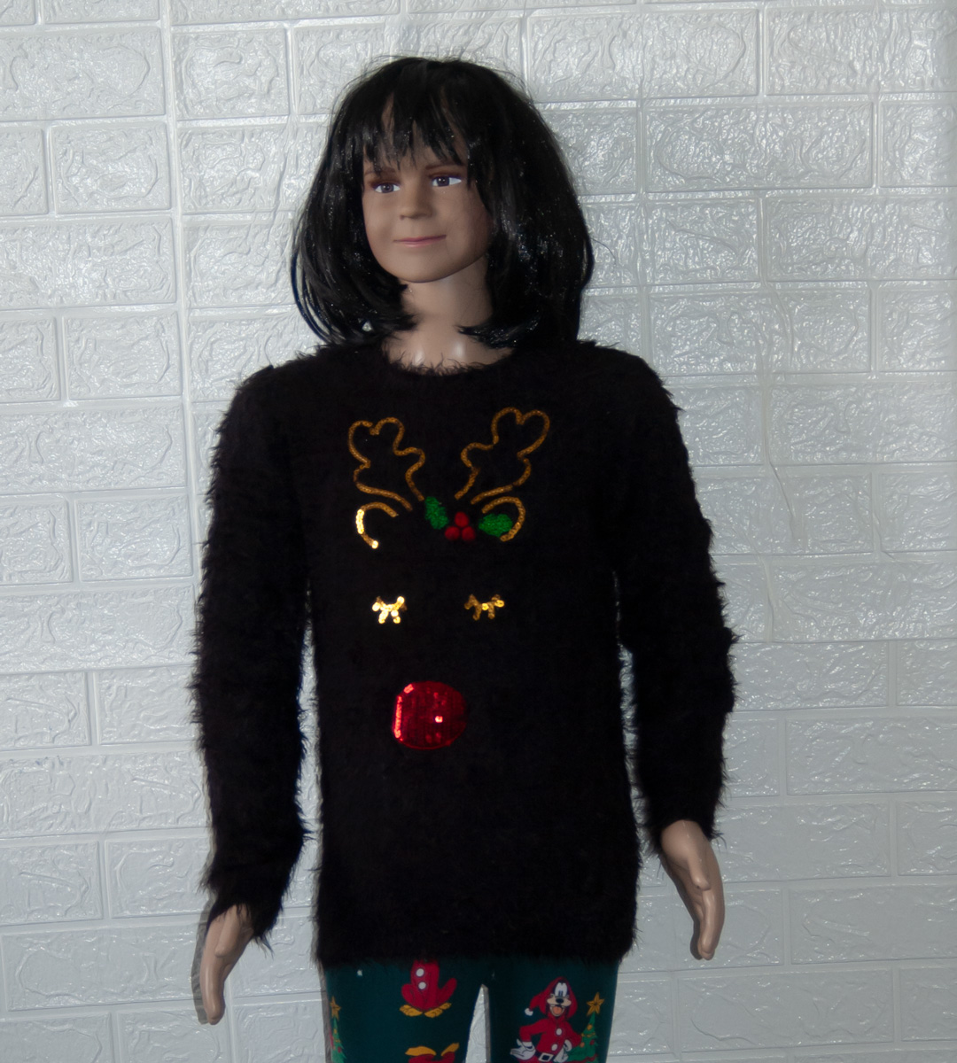 Krásný heboučký svetr zn. M&Co, vel. 140 (9-10 let). Obléká se přes hlavu. Parádní na advent, štědrý den, na vánoční focení nebo jako vánoční dárek. Černá barva s obrázkem z flitrů. Top stav jako nový, připravený k okamžitému odeslání. Pro představu na fotce figurína dívka Sophie (10 let, výška 140 cm).