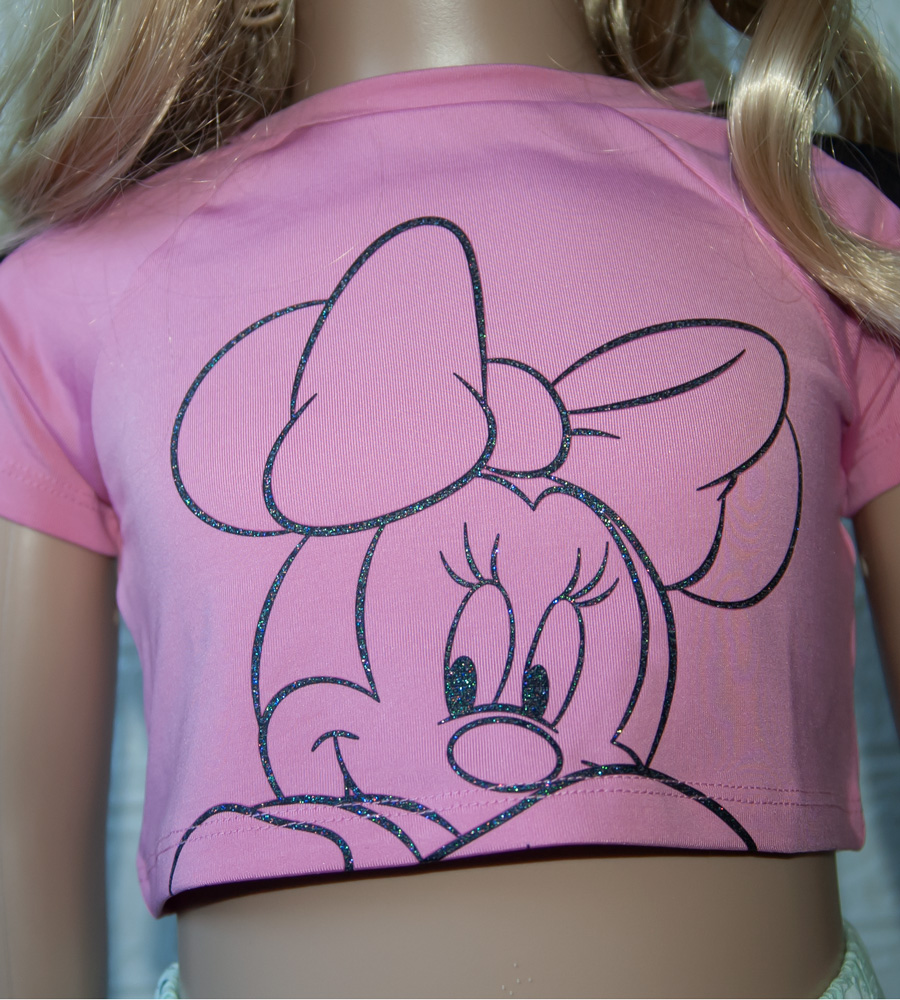 Kouzelné triko zn. DISNEY s Minnie, vel. 98 (2-3 roky). Je kraťoučké nad pupíček vhodné ke kraťáskům nebo sukénce. Minnie je posetá barevnými glitry (třpytkami), barva je růžová. Pro představu na fotce figurína holčička Lola (5 let, výška 110 cm), je vidět, že je jí těsné, menší holčičce 2-4 roky, bude dobře. Triko je jako nové, perfektní stav, připravené k okamžitému odeslání a nošení.