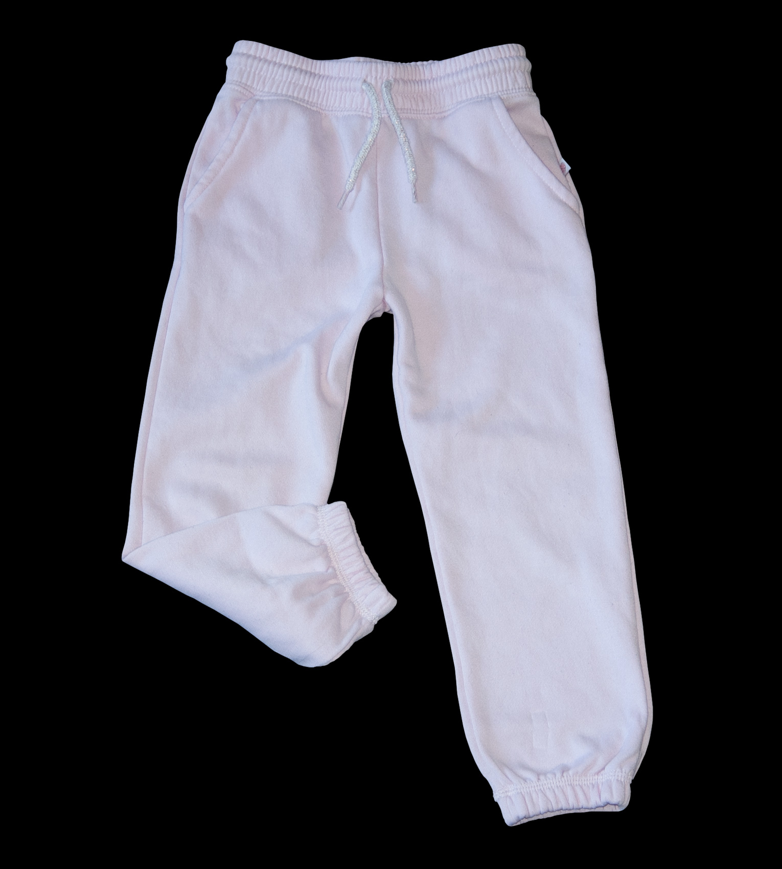 Tepláky zn. PRIMARK, vel. 104 (3-4 roky). Zateplené, měkké. V pase široká guma a šňůrka protkaná stříbřitě růžovou nití, ke stažení, vpředu dvě šikmé kapsy. Nohavice zakončené do nabírané gumy. Barva světlounce růžová. Nošené, bez viditelných vad, pěkné. Připravené k okamžitému odeslání.