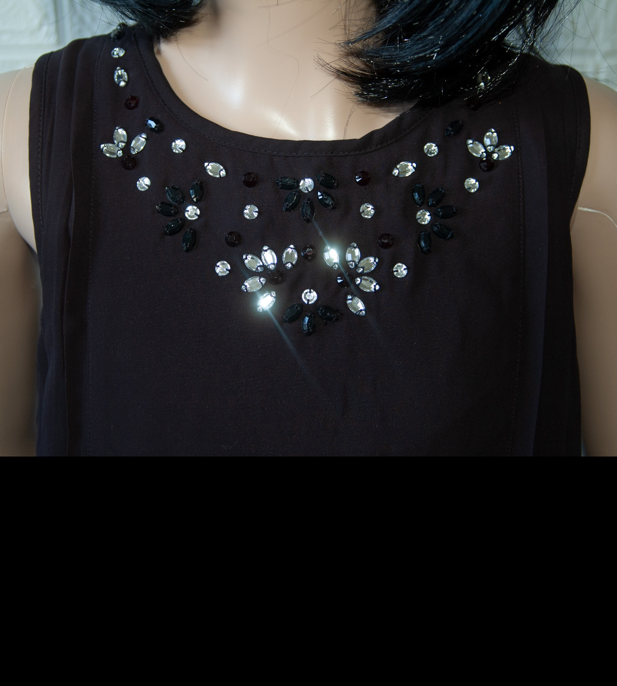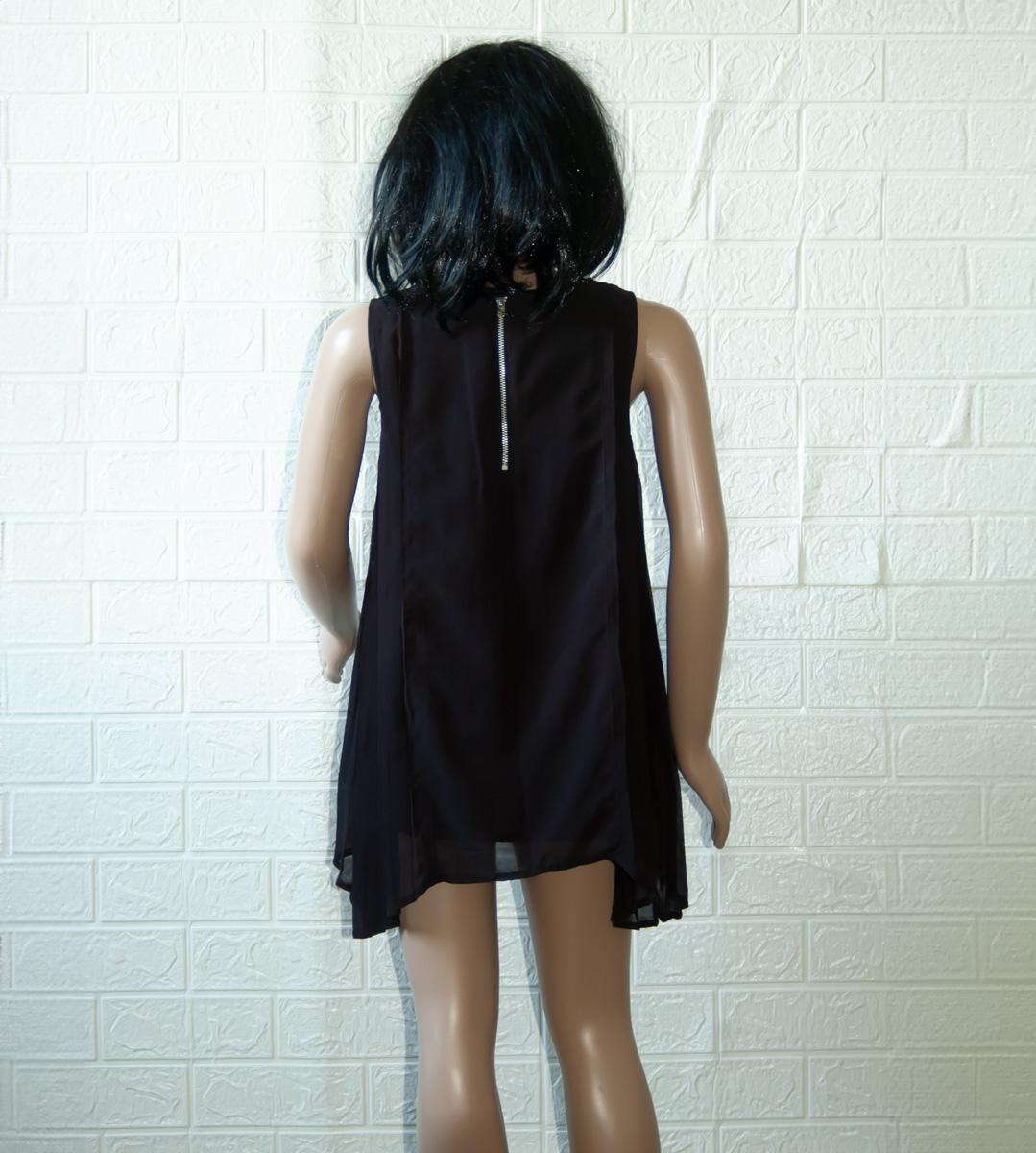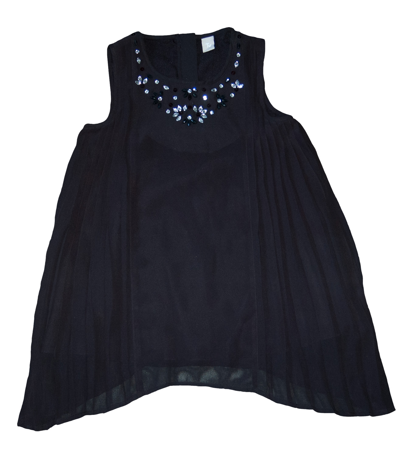 Kouzelná tunika zn. TU, vel. 128 (7-8 let). Tunika je jemná jako pavučina, slaboučká a průsvitná, má jemnou tenkou černou podšívku. Od ramen dolů po stranách je plisovaná (skládaná). Je černé barvy, u dekoltu černý a stříbrný štras. Vzadu v horní části zapínání na zip, šitá do oblouku, po stranách cípy. Hodí se na slavnostní příležitost (focení, divadlo aj. společenské akce). Pro představu na fotce figurína holčička Sophie (10 let; výška 140 cm; míry Sophie: obvod hrudníku 65 cm, obvod pasu 56 cm, obvod boků 68 cm, obvod stehna 41 cm), dle fotek určitě může nosit i starší slečna. Sedmileté holčičce poslouží spíše jako šaty. TOP stav, bez vad jako nová, připravená k okamžitému odeslání.