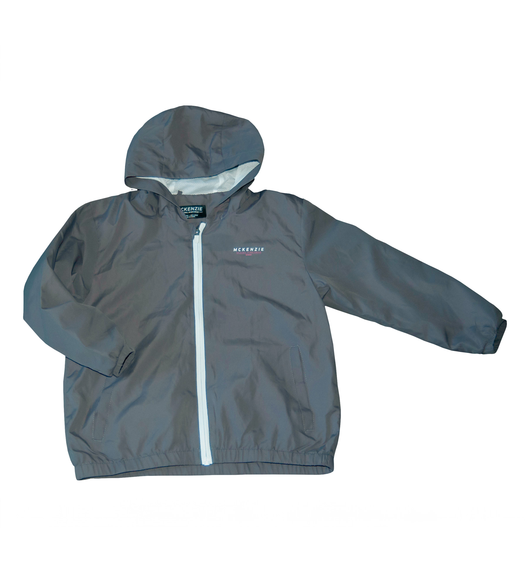 Větrová bunda zn. MCKENZIE, vel. 128 (7-8 let). Zapínání na zip, u krku krytý légou, vpředu dvě šikmé kapsy. Bunda má síťovou podšívku, v rukávech je podšívka z bílého šusťáku. Je lehoučká, módní, slušivá, ideální na teplé jarní dny nebo letní večery. Kapuce je součástí bundy, přišitá napevno. Bunda i rukávy jsou zakončeny do nabírané gumy. Barva je v odstínu tmavošedé, s bílými doplňky, vpředu na levé straně logo. Top stav, bez vad, nenošená, bez visačky. Připravená k okamžitému odeslání.