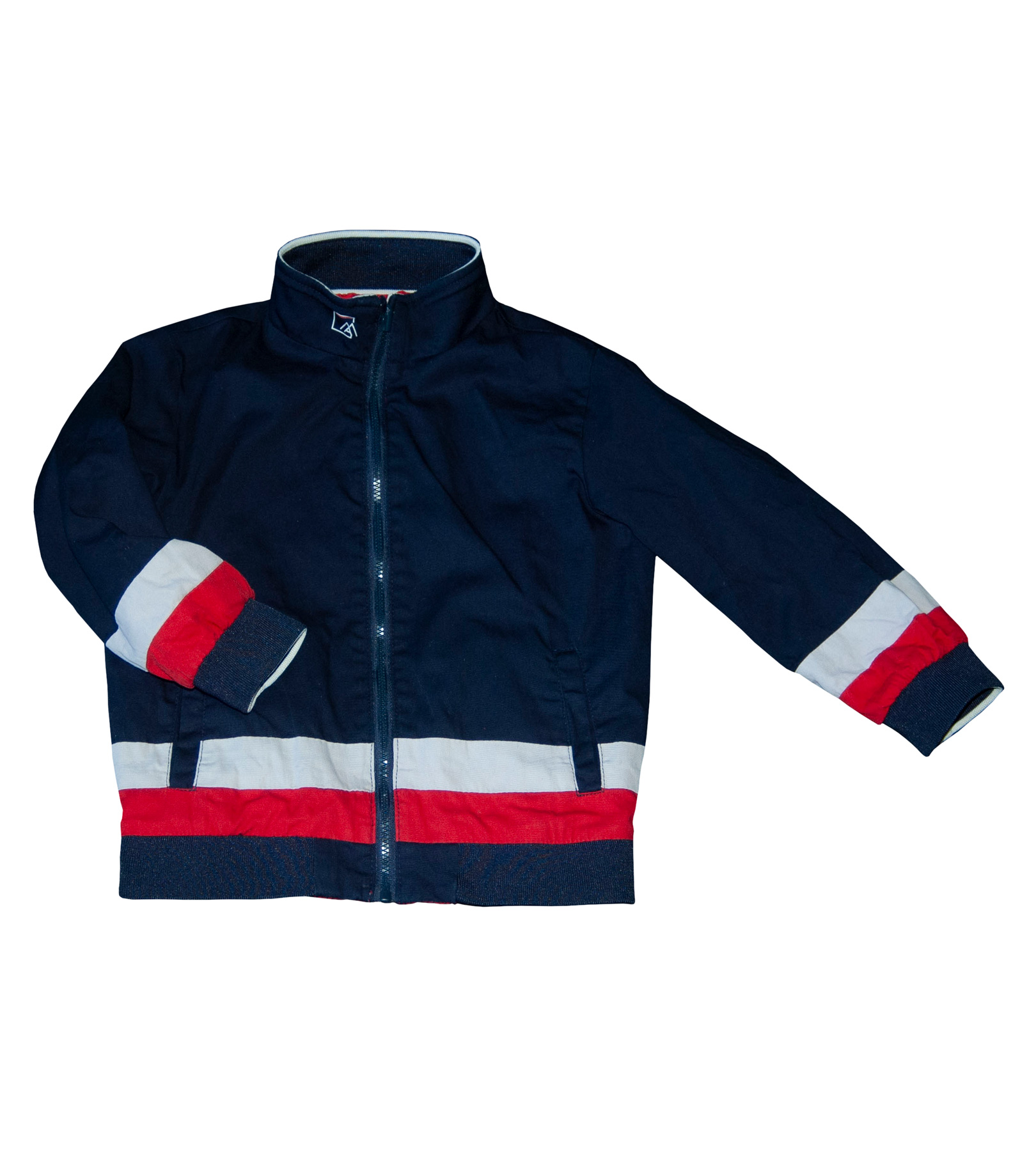 Sportovní bunda zn. MAYORAL, vel. 104 (3-4 roky). Zapínání na zip, u krku krytý légou, vpředu dvě kapsy. Bunda je z červené strany z jemného hladkého lesklého šusťáku, z druhé strany je ze silného bavlněného plátna. Je lehoučká, módní, slušivá, ideální na první jarní nebo podzimní dny. Bez kapuce, s límcem. Bunda i rukávy jsou zakončeny pružnou manžetou. Výhodou je, že ji lze nosit tak i tak. Z jedné strany jasně červená, s tmavomodrými a bílými doplňky, na přední straně logo. Z druhé strany je tmavomodrá s bílým a červeným pruhem na spodním díle, též z této strany dvě kapsy, logo na límci. Top stav, bez vad. Připravená k okamžitému odeslání.