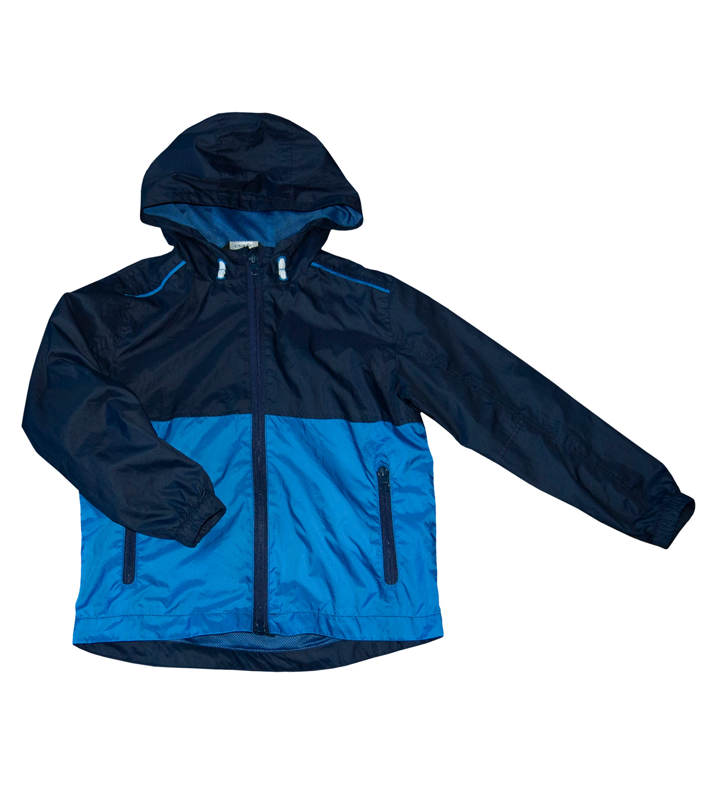 Stylová bunda zn. GEORGE, vel. 116 (5-6 let). Zapínání na zip, u krku krytý légou. Vpředu dvě kapsy na zip. Bunda má síťovou podšívku, je lehoučká a slabá. Moc slušivá, ideální od jara až do podzimu jako ochrana před deštěm. Kapuce je přišitá napevno, součástí bundy. Šitá do oblouku, zadní díl šitý jako delší. Rukávy jsou zakončeny do nabírané gumy. Kombinace barev černé a tmavomodré. Nenošená, TOP stav. Připravená k okamžitému odeslání.