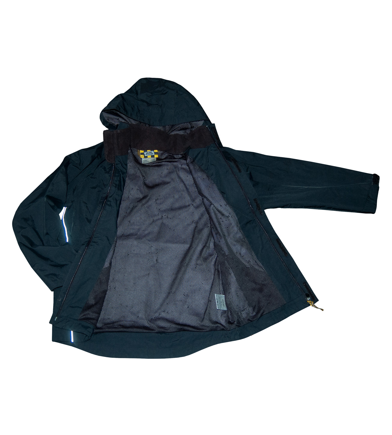 Závodní bunda zn. RELIANT ATTITUDE, vel. 140 (9-10 let), klidně i na většího chlapce, dle dítěte (měřte). Dvojí zapínání, na zip, krytý légou a vrchní klopa na suché zipy. Vpředu tři kapsy, jedna šikmá náprsní na zip, a dvě v dolní části ze stran, též na zip. Bunda má síťovou černou podšívku, parádní na jaro nebo podzim, šitá do oblouku, tudíž zadní díl je delší. Kapuce je napevno přišitá, součástí bundy, ale lze ji schovat a zapnout do límce. Na rukávech pásky ke stažení, na suchý zip. Barva je černá s reflexními prvky (pruhy, vzadu odrazka). Bez vad, pěkná, připravená k okamžitému odeslání.