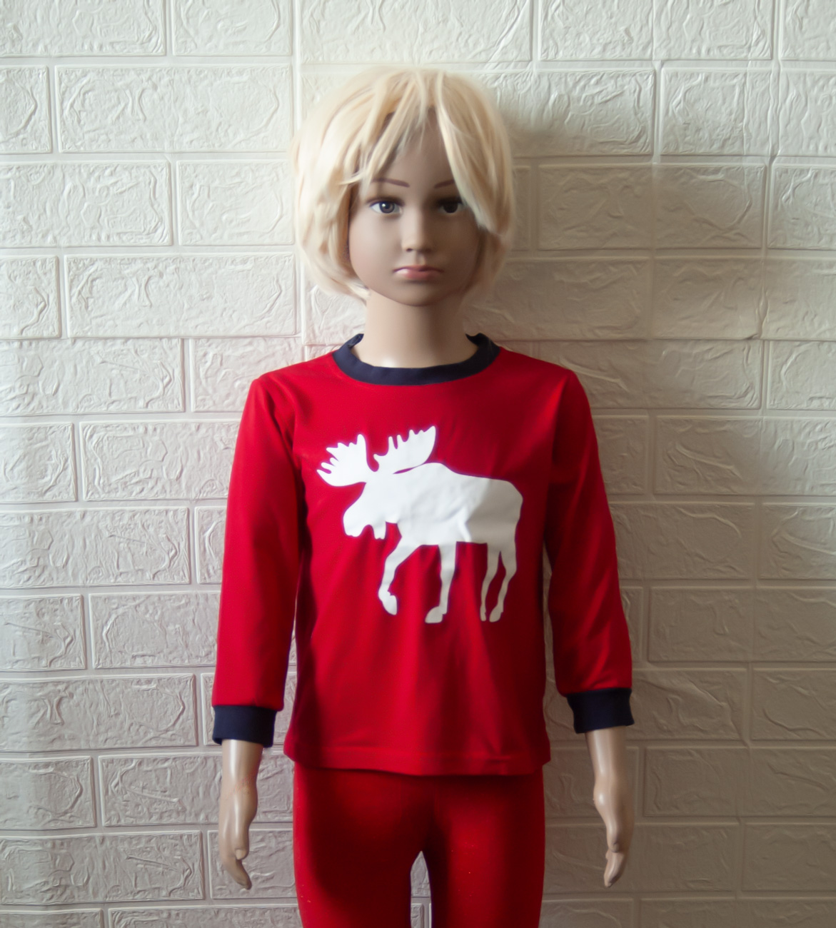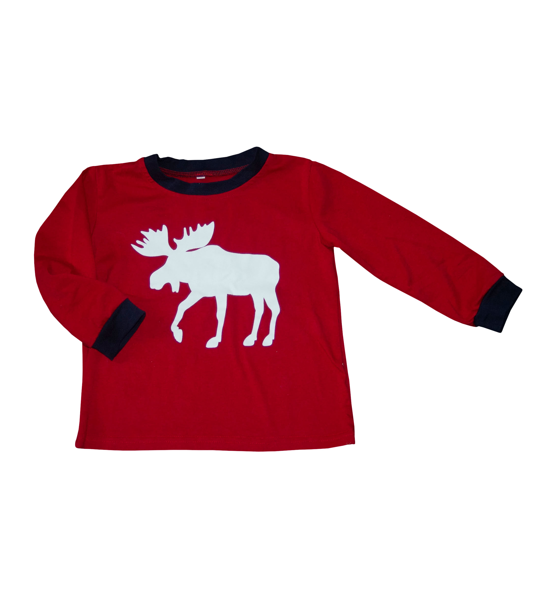 Triko bez značky vel. 104 (3-4 roky). Krásné červené triko, kvalitní materiál, vánoční červené barvy s kontrastními tmavomodrými lemy, s obrázkem bílého soba. Triko je jak nové, nenošené, připravené k okamžitému odeslání.