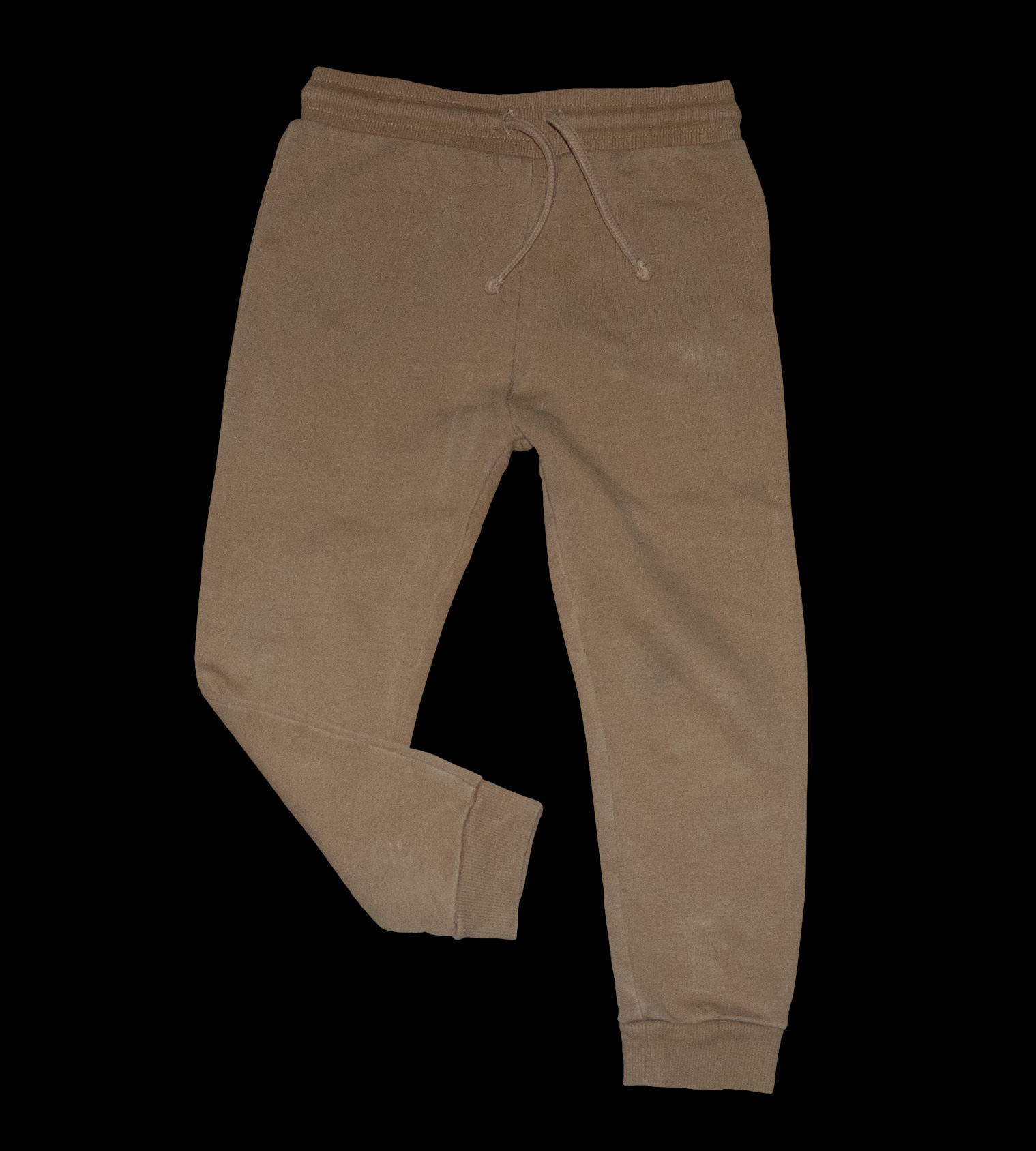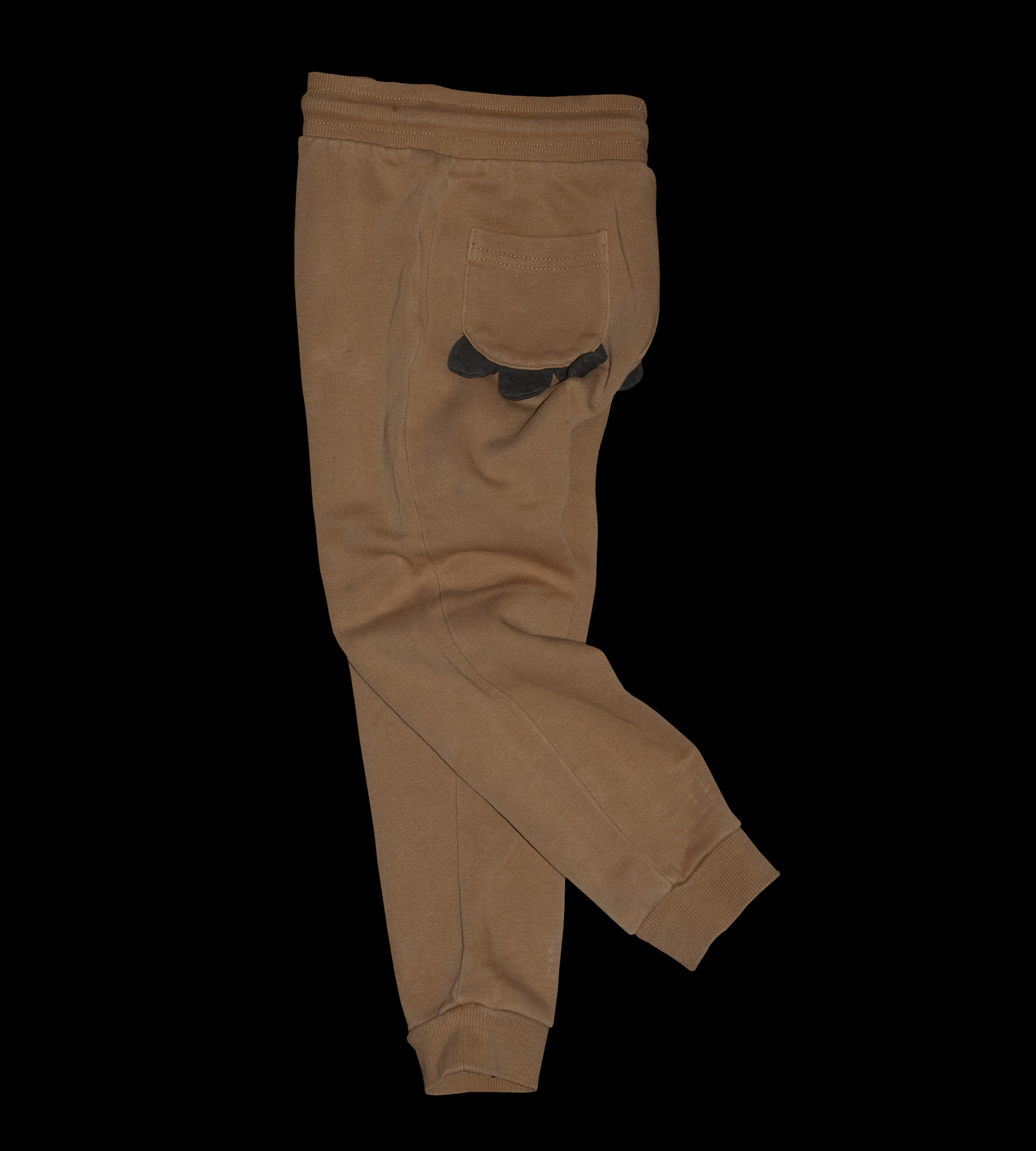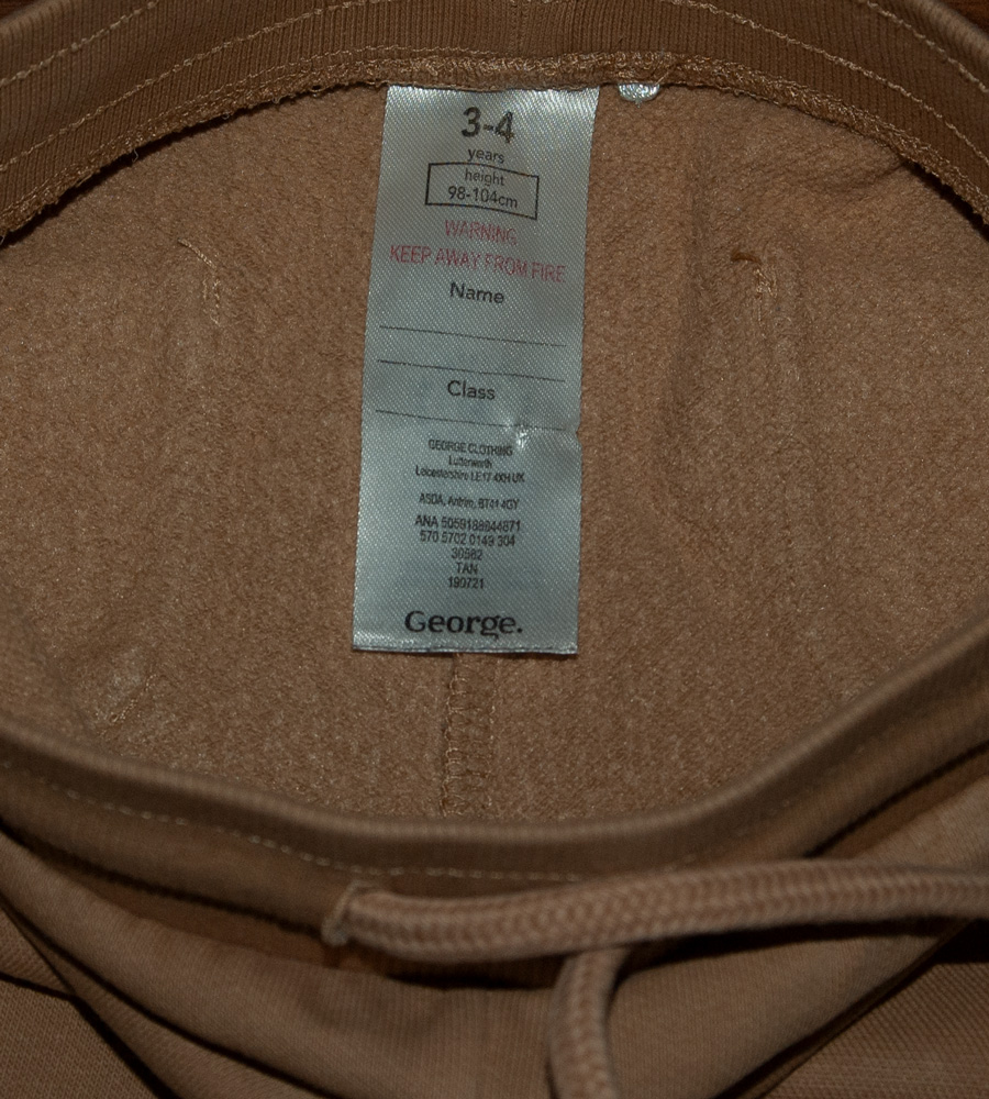 Tepláky zn. GEORGE, vel. 104 (3-4 roky). Slabě tence zateplené chloupkem, kvalitní bavlna. Vpředu bez kapes, vzadu dvě s ozdobami. V pase široká guma a šňůrka na stažení zakončení nohavic do manžet. Barva je velbloudí hnědá. Tepláky vypadají jako nenošené, ale mají na dvou místech slaboučké maličké skvrny od zelené fixy (světlé, nepatrné na první pohled, našla jsem po delším pátrání), připravené k okamžitému odeslání.