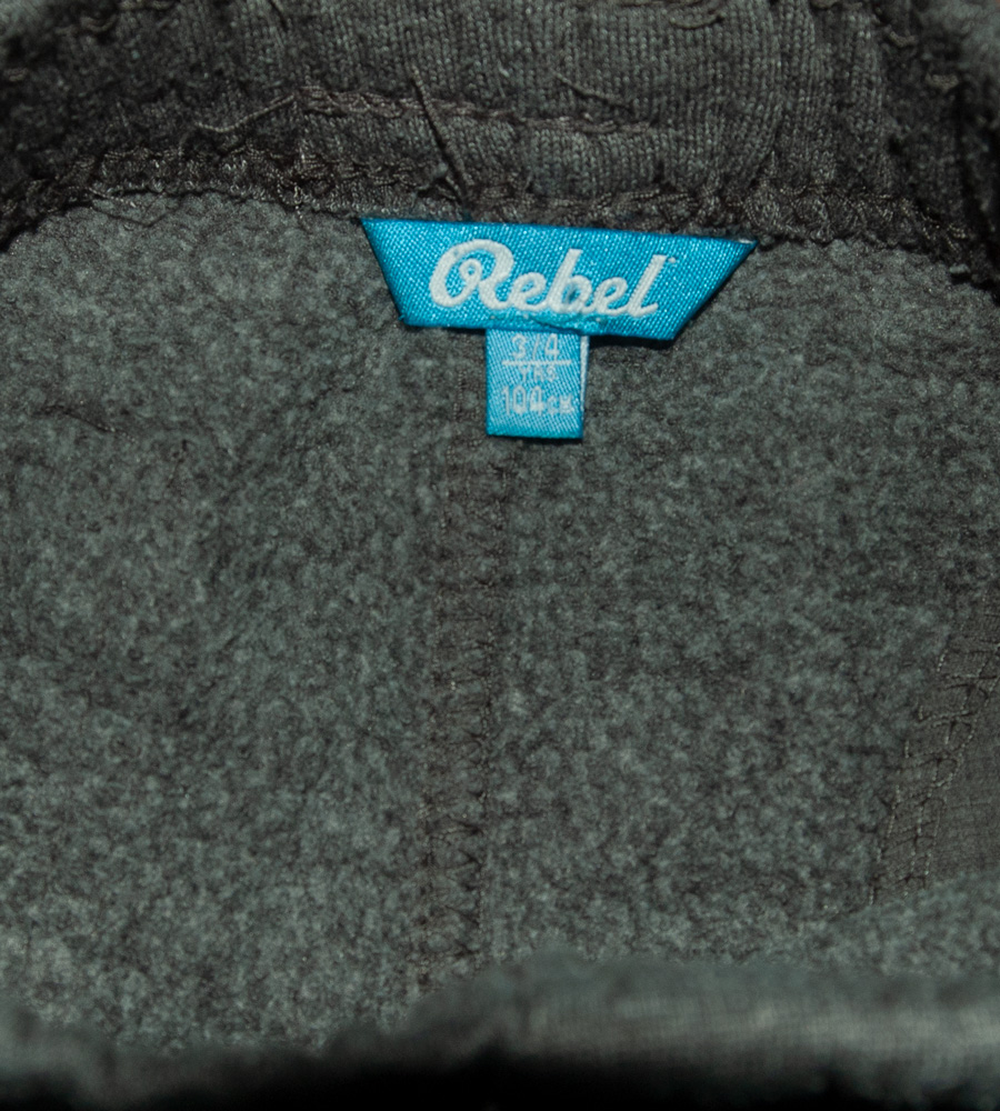 Tepláky zn. REBEL, vel. 104 (3-4 roky). Zateplené chloupkem, silné, kvalitní bavlna. Vpředu falešný poklopec, ze stran dvě šikmé kapsy a vzadu jedna kapsička. V pase široká guma, šňůrka pouze na ozdobu, zakončení nohavic do gumy, pohodlný střih. Barva je tmavošedá. Tepláky mají žmolíček od praní a lehce světlá kolena jinak jsou v pořádku, připravené k okamžitému odeslání.