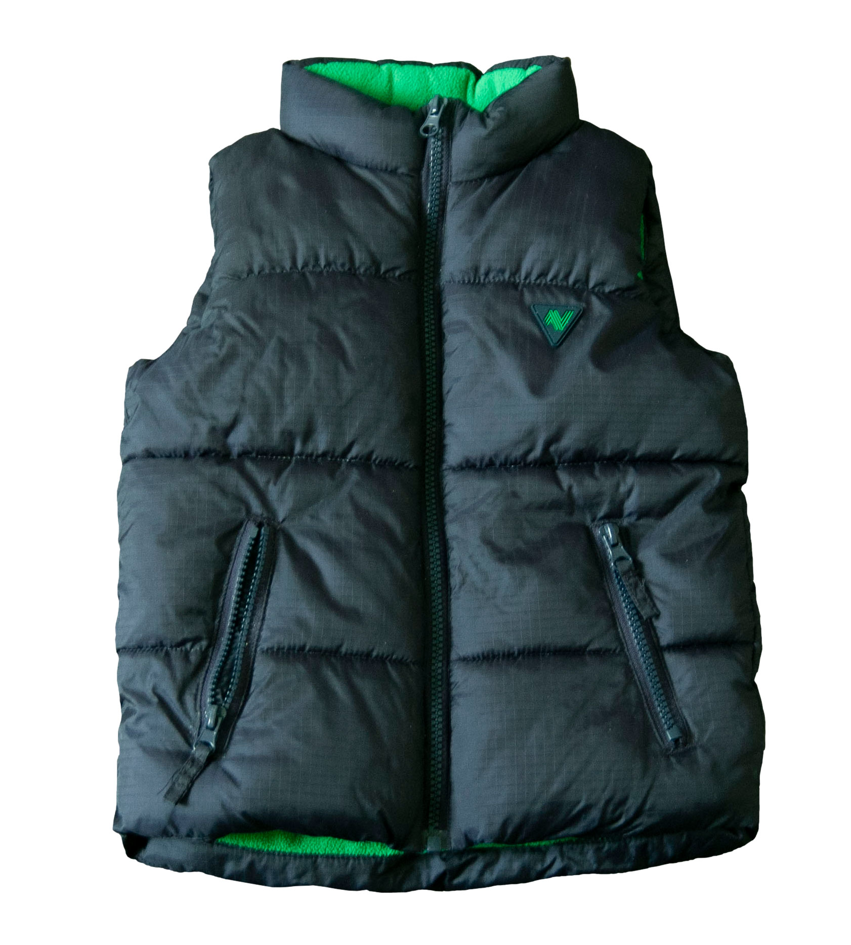 Zimní vesta pro chlapce, který nerad nosí bundu a dává přednost vestě s mikinou, od zn. NEXT, vel. 104 (3-4 roky). Zapínání na zip. Vpředu dvě kapsy na zip, bez kapuce. Celá vesta je uvnitř bohatě zateplená vatelínem a je vodorovně prošitá v pruzích. Podšívka je ze zeleného fleece. Barva je černá s doplňky zelené. Pro představu na fotce figurína chlapec Ben (5 let, výška 110 cm). Vesta je v TOP stavu, párkrát nošená jako nová. Slušivá, outdoorová. Připravená k okamžitému odeslání.