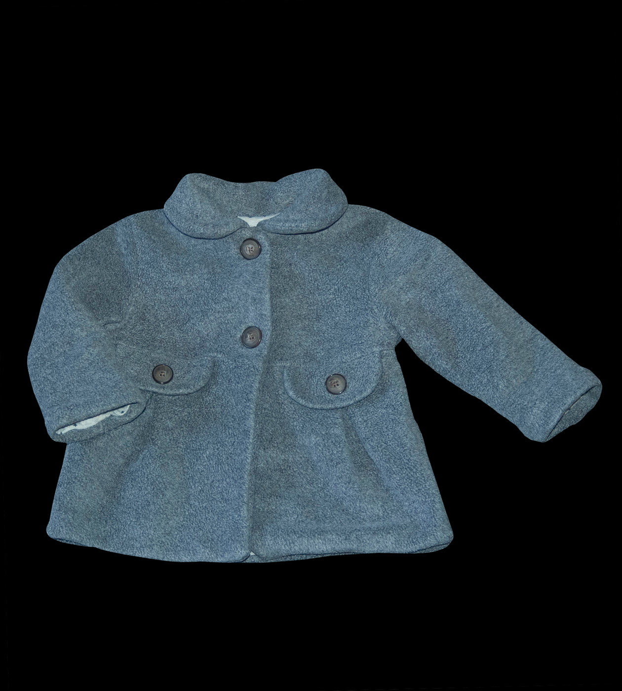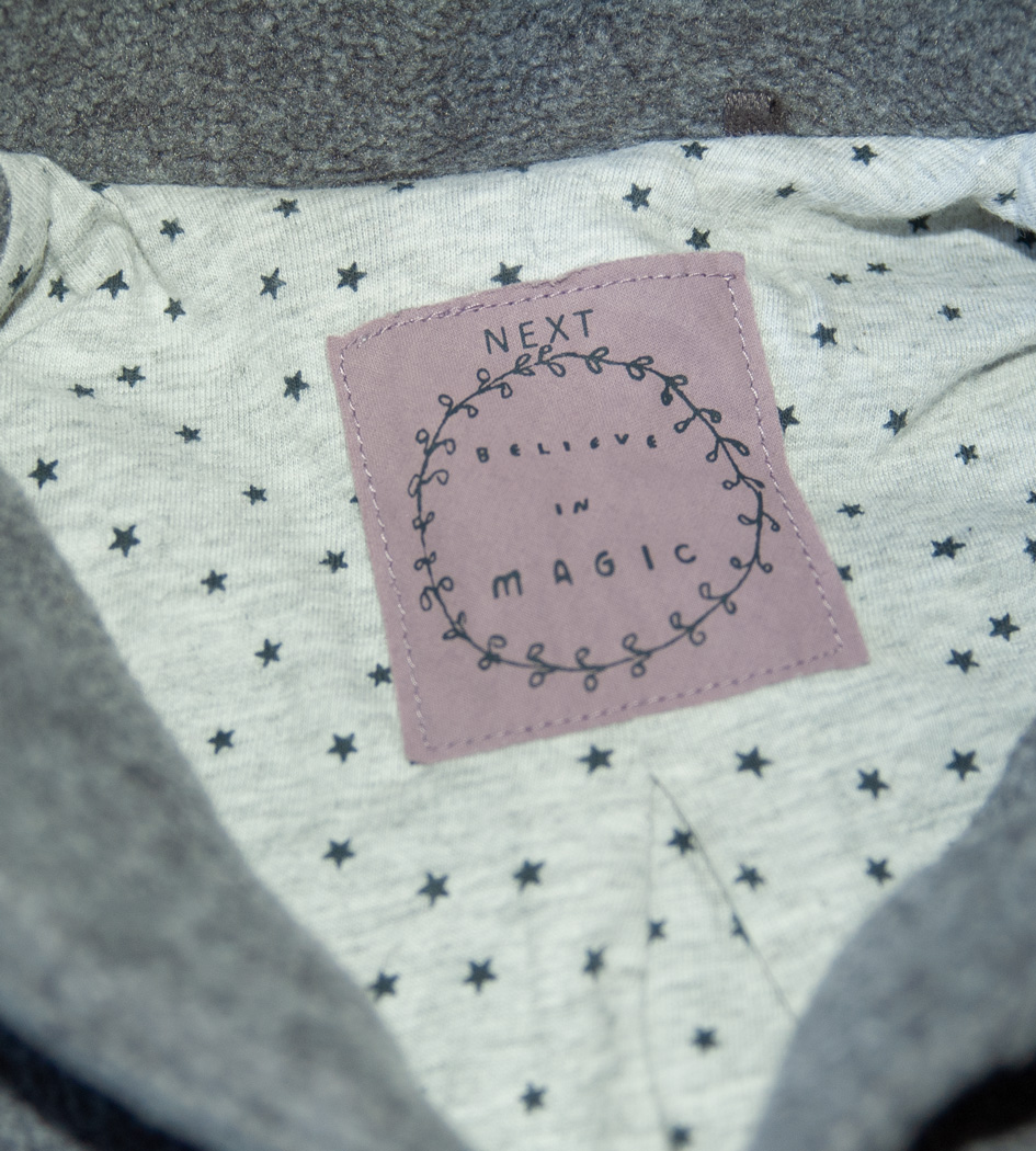 Jarní/podzimní fleecový kabátek zn. NEXT, vel. 86 (12-18 měs.). Zapínání na dva knoflíky. Vepředu dvě ozdobné kapsičky pouze jako dekorace. Kabátek má bavlněnou podšívku s hvězdičkami, je lehoučký, příjemně se nosí. Rukávy jsou volně zakončeny. Typický střih "A" (směrem dolů se rozšiřuje). Barva je studená šedá. Kabátek je bez poničení jako nový, bez visačky. Připravený k okamžitému odeslání.