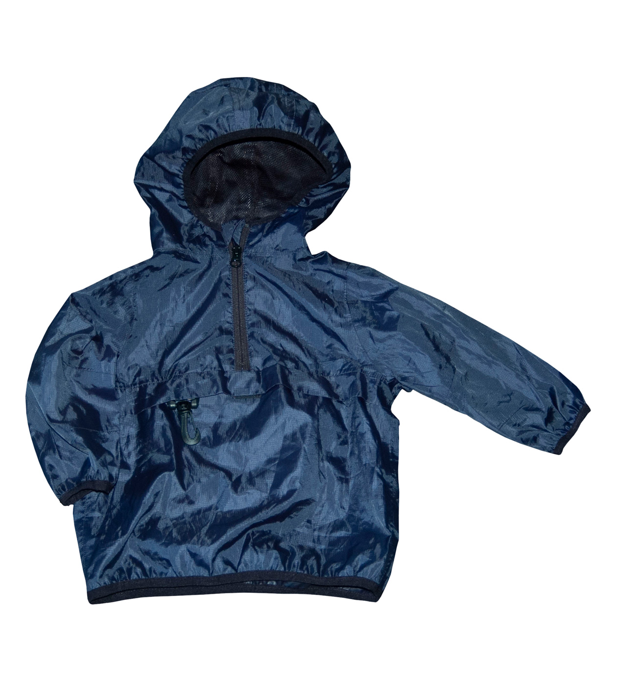 Jarní/letní/podzimní bundička zn. NEXT, vel. 86 (12-18 měs.). Zapínání na zip do 1/3. Vpředu jedna velká kapsa na suchý zip a karabina na připnutí třeba ke kočárku, kšírám atd. Bunda je slaboučká, bez podšívky, ze šusťákoviny, zespodu pogumovaná, takže nepropustná. V kapuce je síťová podšívka, je součástí bundy, napevno přišitá. Je vhodná na jakékoliv období kromě zimy, slouží jako pláštěnka. Rukávy jsou zakončeny nabíranou gumičkou, stejně tak kapuce a spodní díl bundy. Jednobarevná v odstínu berlínské modré (černomodré). Určitě může nosit i holčička. Je jako nová (bez visačky). Připravená k okamžitému odeslání.