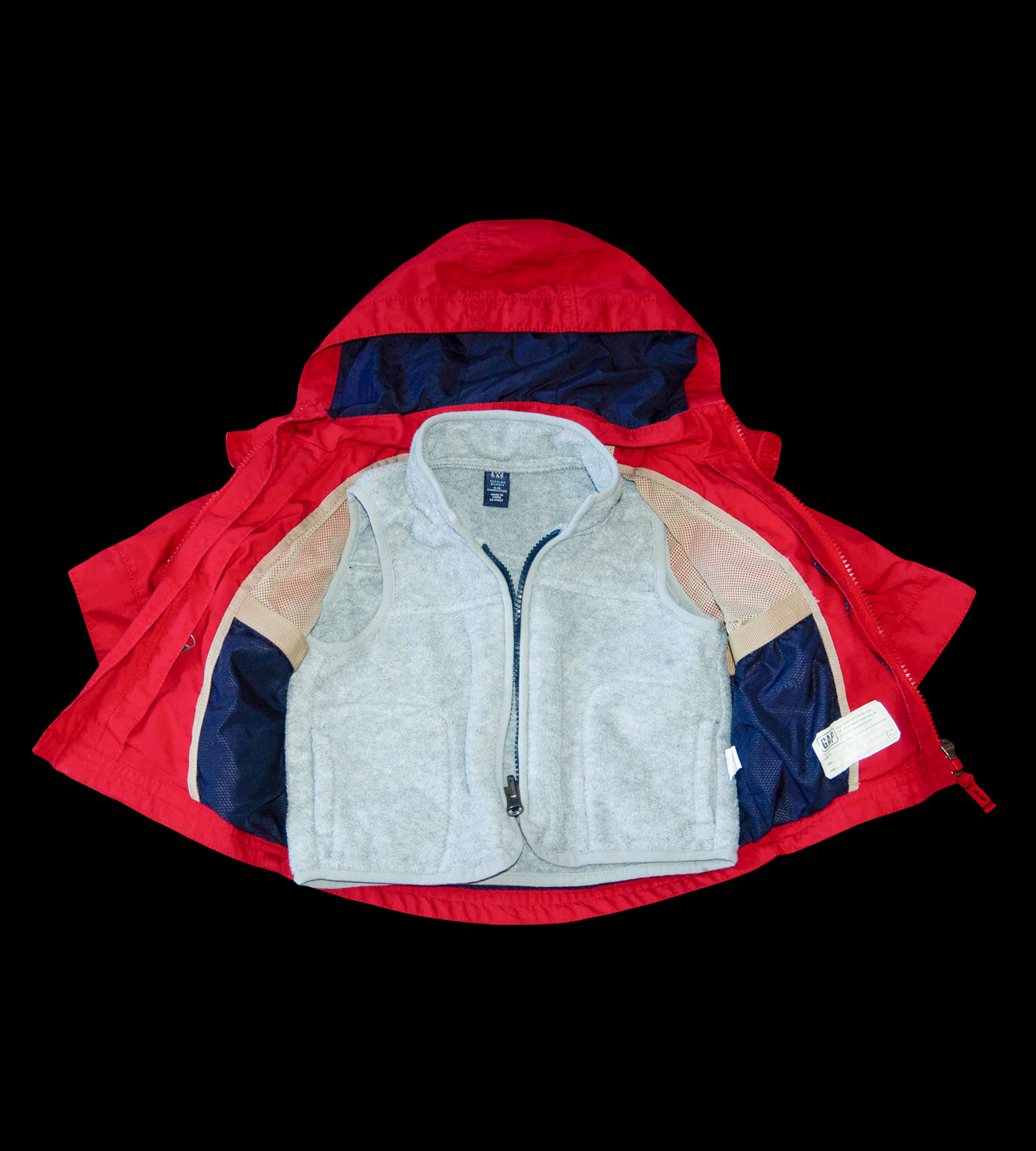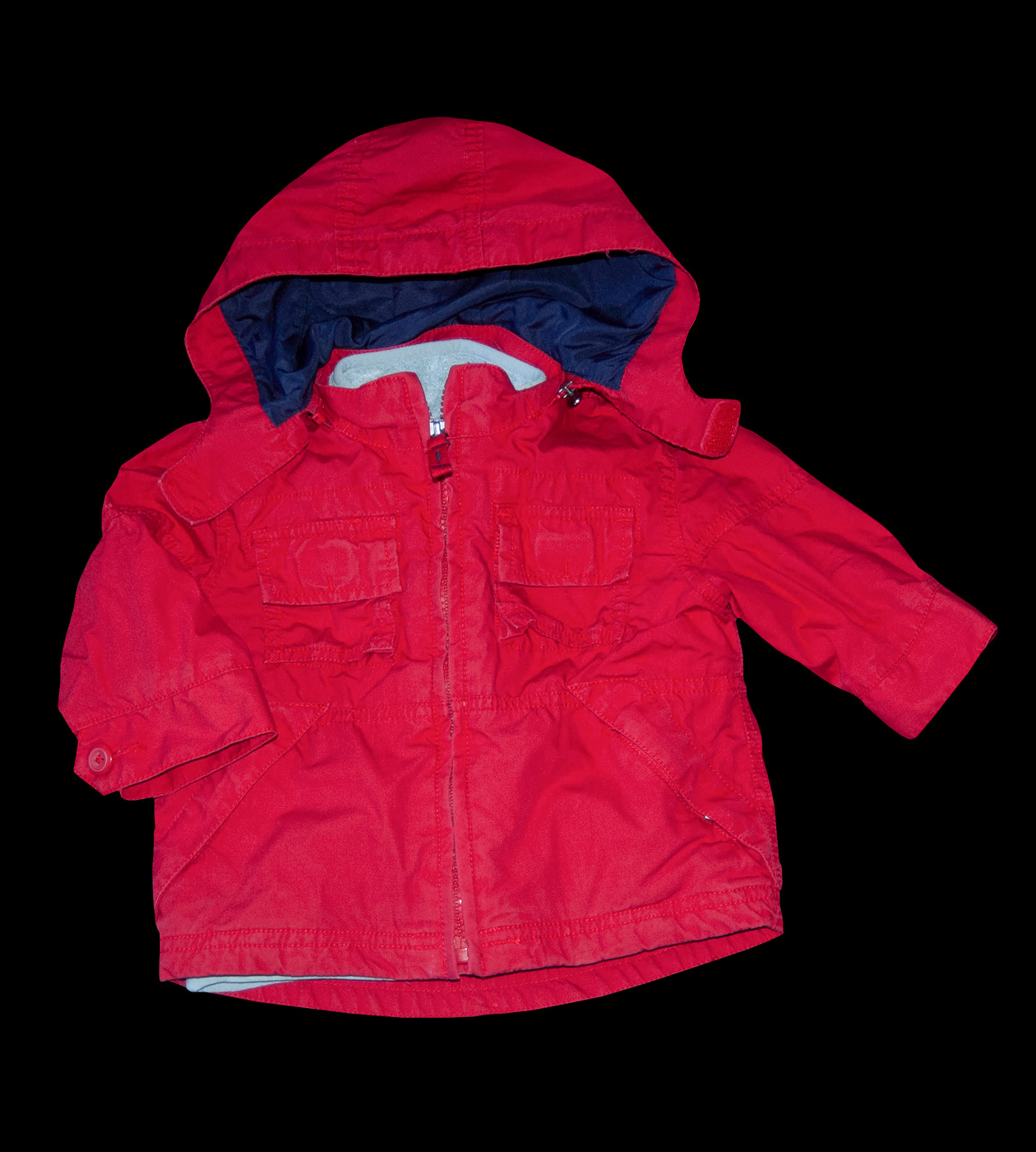 Parádní jarní/podzimní bundička zn. GAP, vel. 74 (6-9 měs.) možno i více, dle dítka. Bunda se skládá z šedé teplé fleecové vestičky, která je vložená a připevněná k bundě. Vesta se zapíná na zip a má dvě kapsičky, po vyjmutí lze nosit i samostatně. Samotná bunda má z 1/2 podšívku ze síťoviny, a z 1/2 ze šusťákoviny. Má dvojité zapínání na zipy, jeden vnitřní je kratší a druhý vnější je delší. Má čtyři kapsičky, dvě na zip a dvě na suchý zip. Bunda je lehoučká, kvalitní materiál, ideální na jarní nebo podzimní dny, s vestou i klidně do zimy. Kapuce je připnutá na zip, takže lze odepnout a nosit bez ní. Rukávy jsou zakončeny volně, zapínání na knoflík. Barva je je jahůdkově červená, v kombinaci s tmavomodrým vnitřkem a světle šedou vestou. Top stav, bez vad, nošená minimálně. Připravená k okamžitému odeslání.
