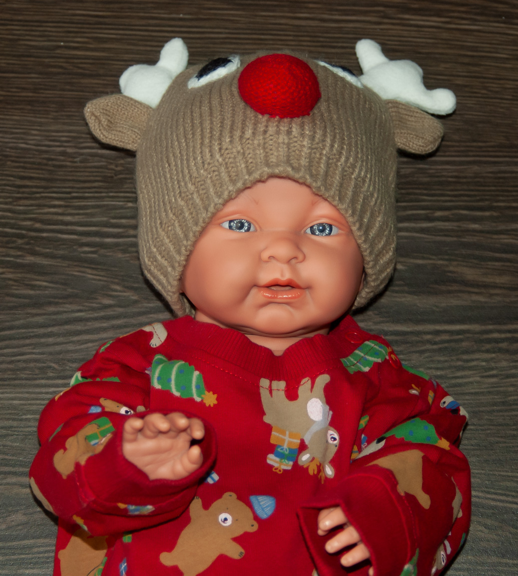 Čepice se zimním motivem zn. EARLY DAYS vel. 74(6-9 měs.), dle dítka, měřte. Parádní na adventní dny, štědrý den, vánoční svátky, vánoční focení nebo jako vánoční dárek. Je zateplená i uvnitř měkkým flaušem. Krásné zpracování obrázku: pletené oči, bambule namísto nosu, semišové parohy. Barva je zelenohnědá přírodní. Na miminku roztomilá. Pro představu na fotce figurína chlapeček Hynek (novorozenec - měří 50 cm, obvod hlavy 34 cm), je mu větší, je to pro starší miminko od 6. měs., ale samozřejmě záleží na velikosti dítěte. Top stav, dá se říct nová bez visačky.