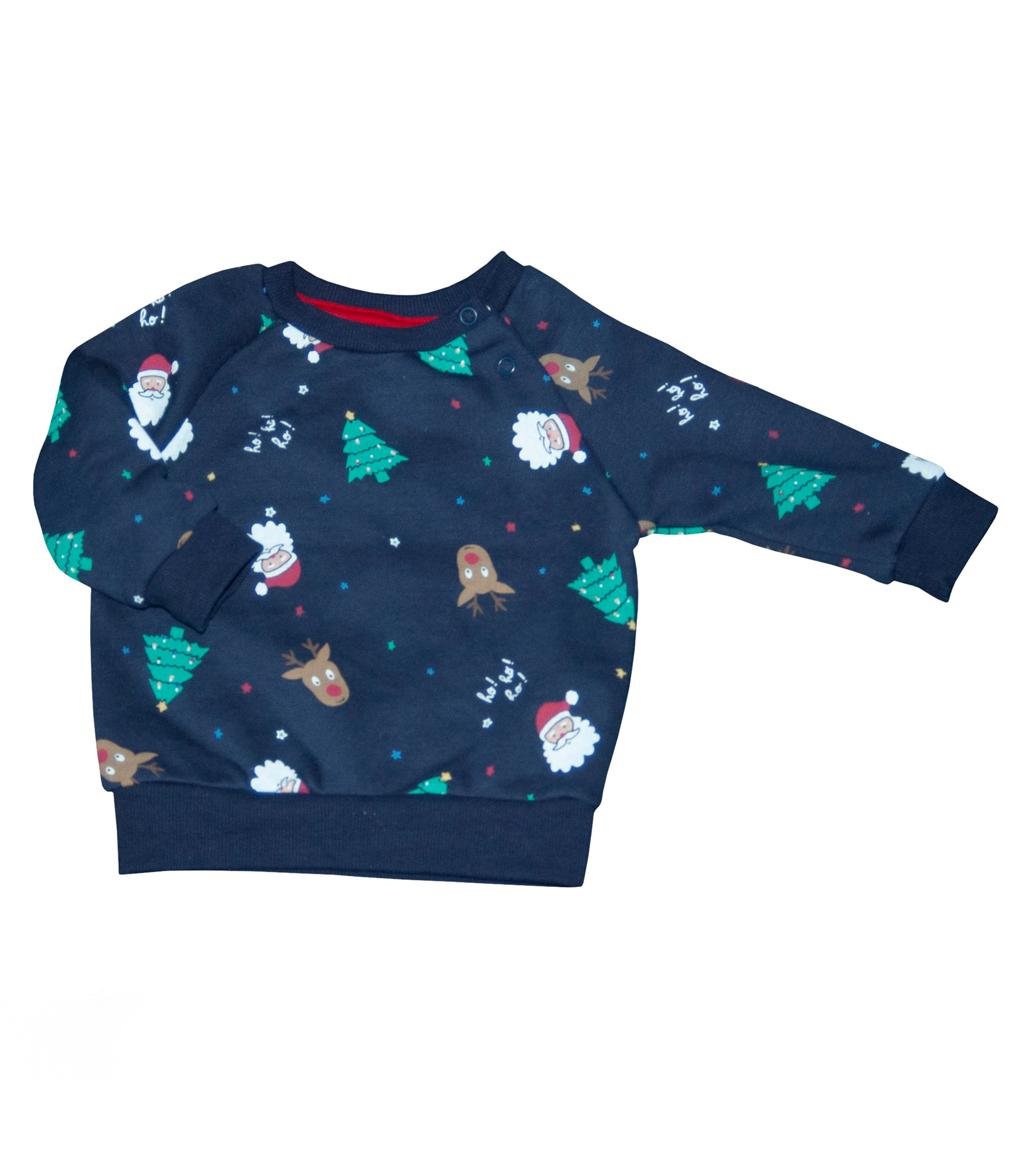 Zateplená mikina zn. PRIMARK, vel. 74 (6-9 měs.). Obléká se přes hlavu, vpředu u ramen dva patentky, zateplená flaušem. Parádní na advent, štědrý den nebo na vánoční focení. Tmavá modrá s obrázky Santy, stromečků, sobů, hvězdiček a slavným Santovým zvoláním "ho! ho! ho!". Pro představu na fotce mimi figurína, chlapeček Hynek (novorozenec - 50 cm), je vidět, že je mu mikinka velká. Top stav, nenošená, bez vad jako nová bez visačky. Vyrobeno v Kambodži, kvalitní materiál, připravená k okamžitému odeslání.