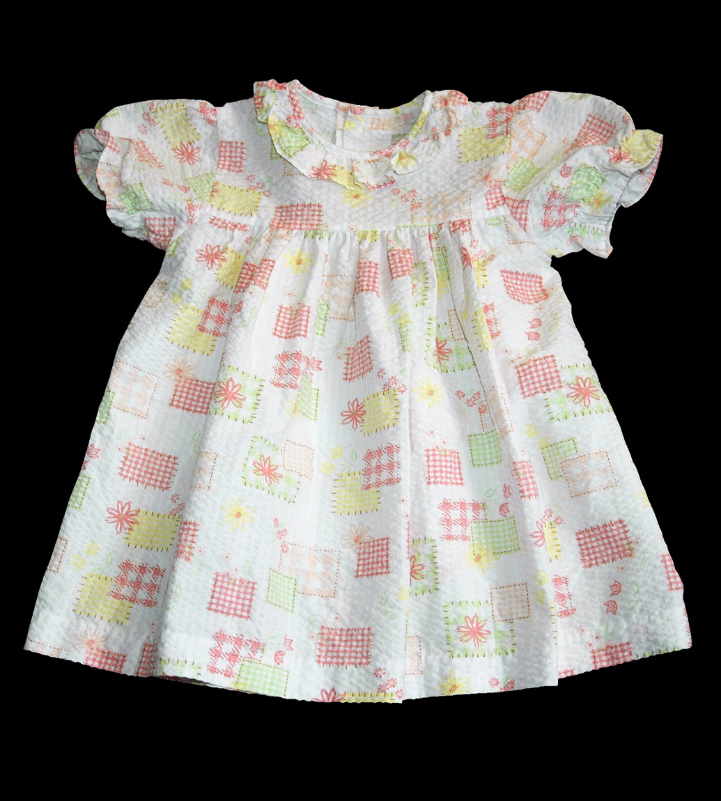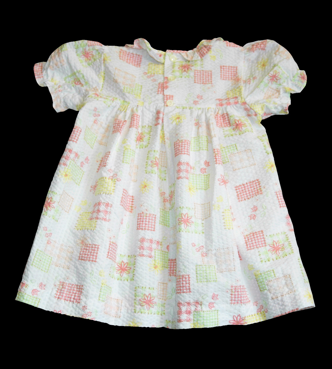 Letní šatičky s motivem zahrádky a léta, zn. GEORGE, vel. 86 (12-18 měs.). Šaty mají balónkové rukávky, zakončené krajkou, u krku krajkový límeček, vzadu zapínání na knoflíky, mají klasický střih A. Jsou lehoučké, krepový materiál, moc pěkné. Na bílém podkladě, v pastelových jemných odstínech, motiv jarní a letní zahrádky. Nenašla jsem na nich žádnou vadu, top stav, dávám do kategorie cream. Připraveny k okamžitému nošení.