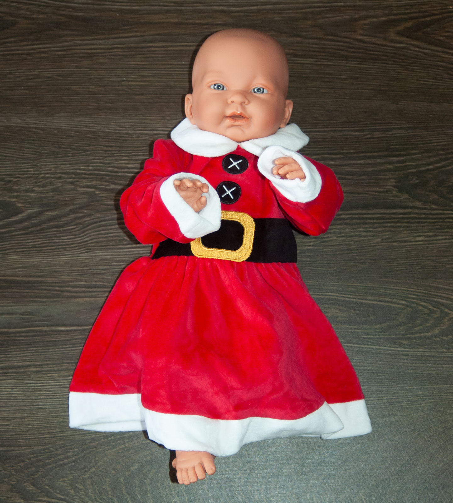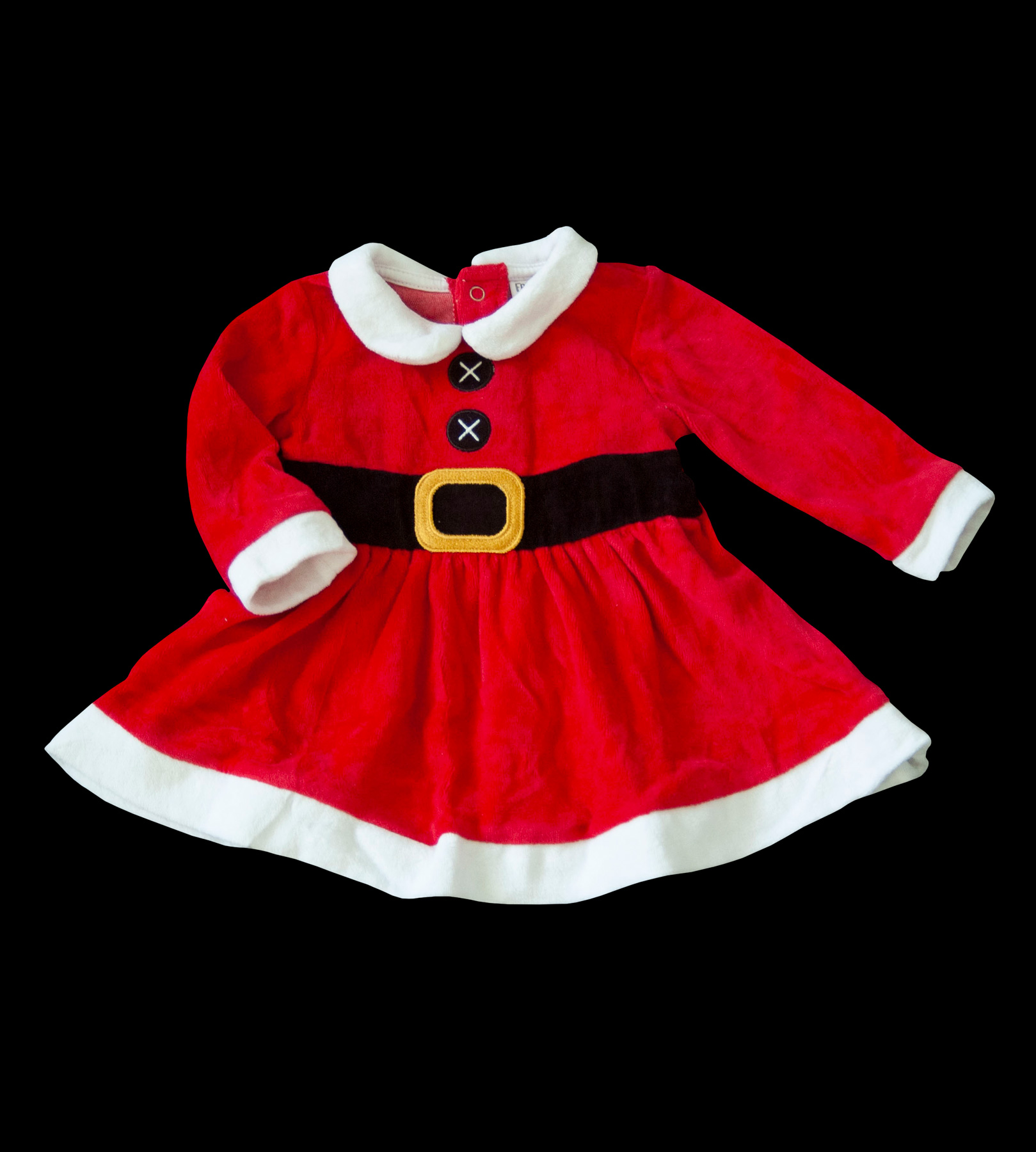 Velurové (semišové) šaty, zn. F&F vel. 68 (3-6 měs.). Oblékají se přes hlavu, vzadu zapínání do 1/3 na tři patentky. Parádní na adventní dny, štědrý den, vánoční focení atd. Jsou jasně červené (santovské) barvy. Klasický střih A (směrem dolů se rozšiřují). Velice příjemné na těle, měkoučký, heboučký velur. Jsou v top stavu, bez vad jako nové, dá se říct, že chybí jen visačka. Pro představu na fotce mimi figurína, holčička Hedvika (novorozenec - měří 50 cm), je vidět, že jsou na starší miminko od 3.měs.