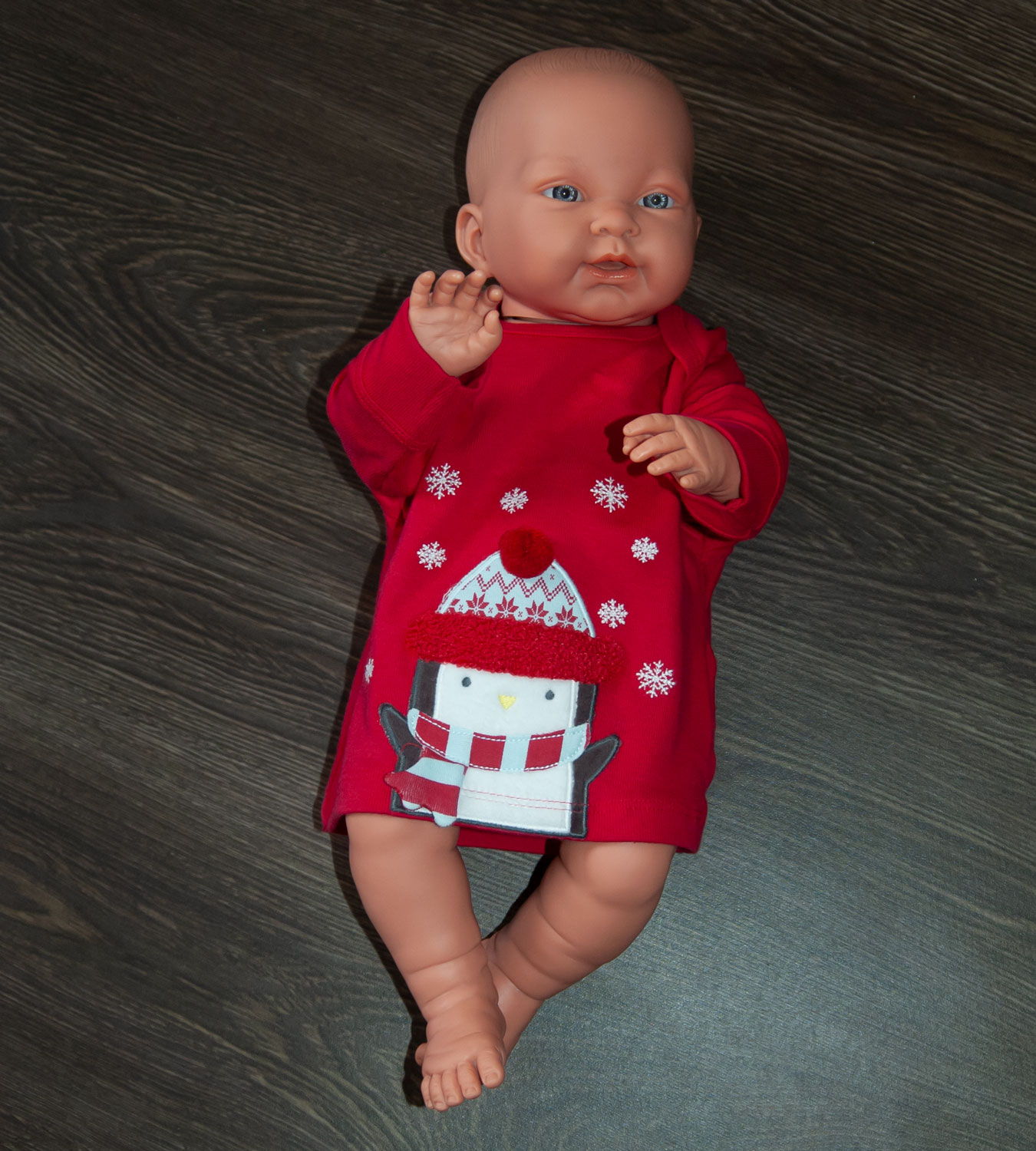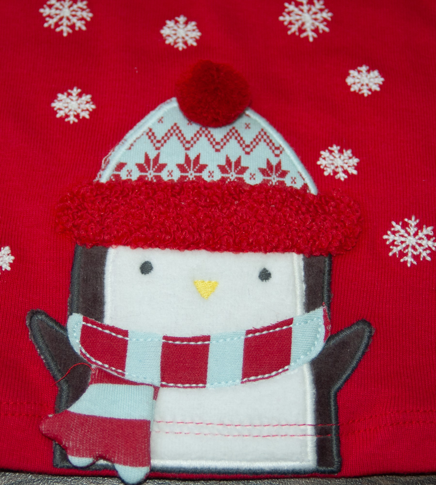 Tričko se zimním motivem zn. MOTHERCARE vel. 56/62 (1-3 měs.). Parádní na adventní dny, štědrý den, vánoční svátky, vánoční focení nebo jako vánoční dárek. Snadno se obléká přes hlavičku, u krku a na ramenou vkusný volný vstup. Krásné zpracování obrázku: semišové a látkové provedení. Hvězdičky jsou vyšívané, čepice tučňáka má reálnou bambuli, reálný lem a šála je též reliéfní, vystupuje z obrázku. Pro představu na fotce mimi figurína, chlapeček Hynek (novorozenec - měří 50 cm). Barva je vánoční červená. Nové s visačkou, připravené k okamžitému odeslání.