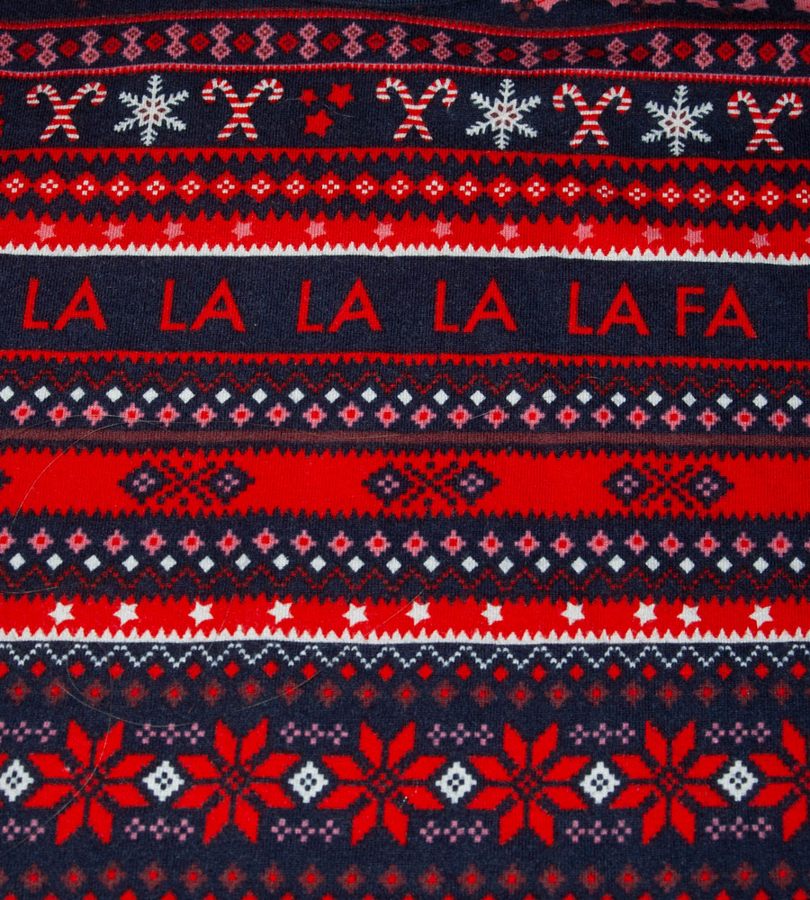 Vánoční pyžamo zn. NUTMEG, vel. 152 (11-12 let). Pyžamo na advent, štědrý den nebo na zimní dlouhé večery. Zakončeno do manžet, v pase u kalhot širší pohodlná guma. Krásná tmavě červená barva v kombinaci s tmavomodrou s vánoční tématikou a norskými hvězdami. Může nosit dívka i chlapec, uni. Vyrobeno v Indii, jako nové bez visačky. Připravené k okamžitému odeslání.