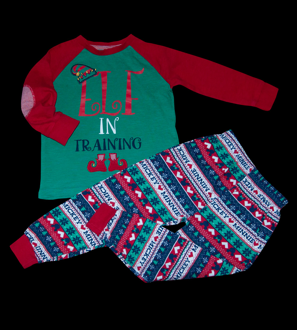Vánoční pyžamo zn. DISNEY a F&F, vel. 86/92 (1-2 roky). Pyžamo na advent, štědrý den nebo na zimní dlouhé večery. Pyžamo není takto originál, je zkompletované. Triko je zn. F&F a kalhoty jsou zn. Disney, je zakončeno do manžet, v pase u kalhot širší pohodlná guma. Krásná výrazná jasná zelená barva, v kombinaci s červenou a bílou. Na triku nápis "skřítek ve výcviku" a na kalhotech motiv Mickeyho, Minnie a vánočních stromečků. Kouzelné a roztomilé, může nosit dívka i chlapec, uni. Vyrobeno v Indii (oba díly), jako nové bez visačky, žádné známky nošení, bez vad. Připravené k okamžitému odeslání.
