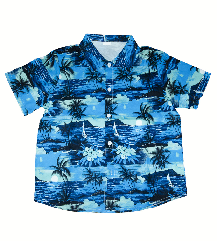 Lehoučká plážová košile vel. 116 (5-6 let). Je chladivá z velice příjemného materiálu, rychleschnoucí, hebká, vhodná na horké dny. Košile má volný krátký rukáv, zakončení spodní části je do oblouku, zapínání na knoflíky. Motiv plážový, palmy, ostrovy, moře. V různých odstínech modré barvy s doplňky černé a bílé. Je nepřehlédnutelná, nápadná a vkusná. Pro představu na fotce figurína chlapec Jake 10 let, výška 140 cm (míry Jakea: obvod hrudníku 65 cm, obvod pasu 56 cm, obvod boků 68 cm), má na sobě velikost 146/152. NOVÁ, připravená k okamžitému odeslání.