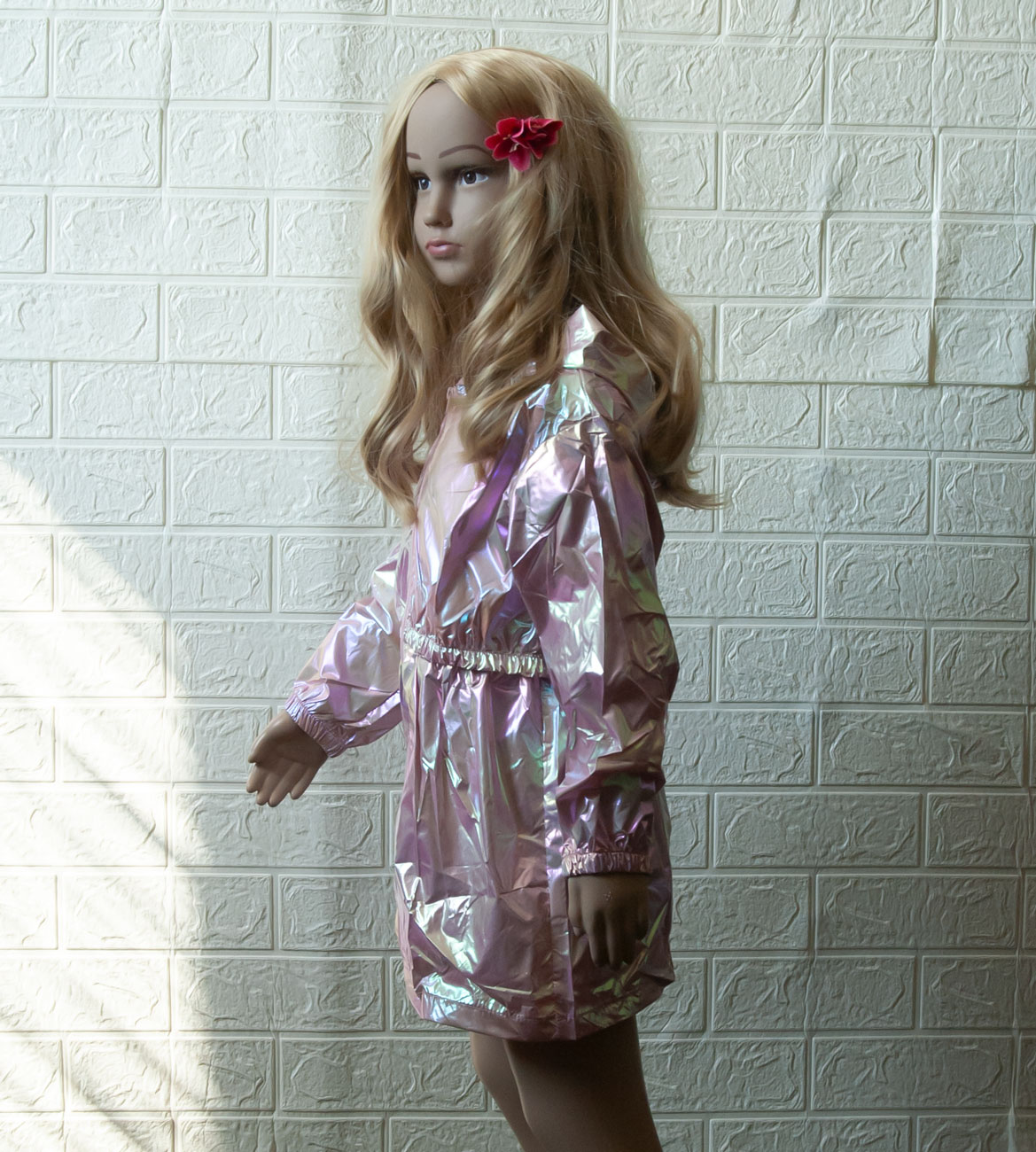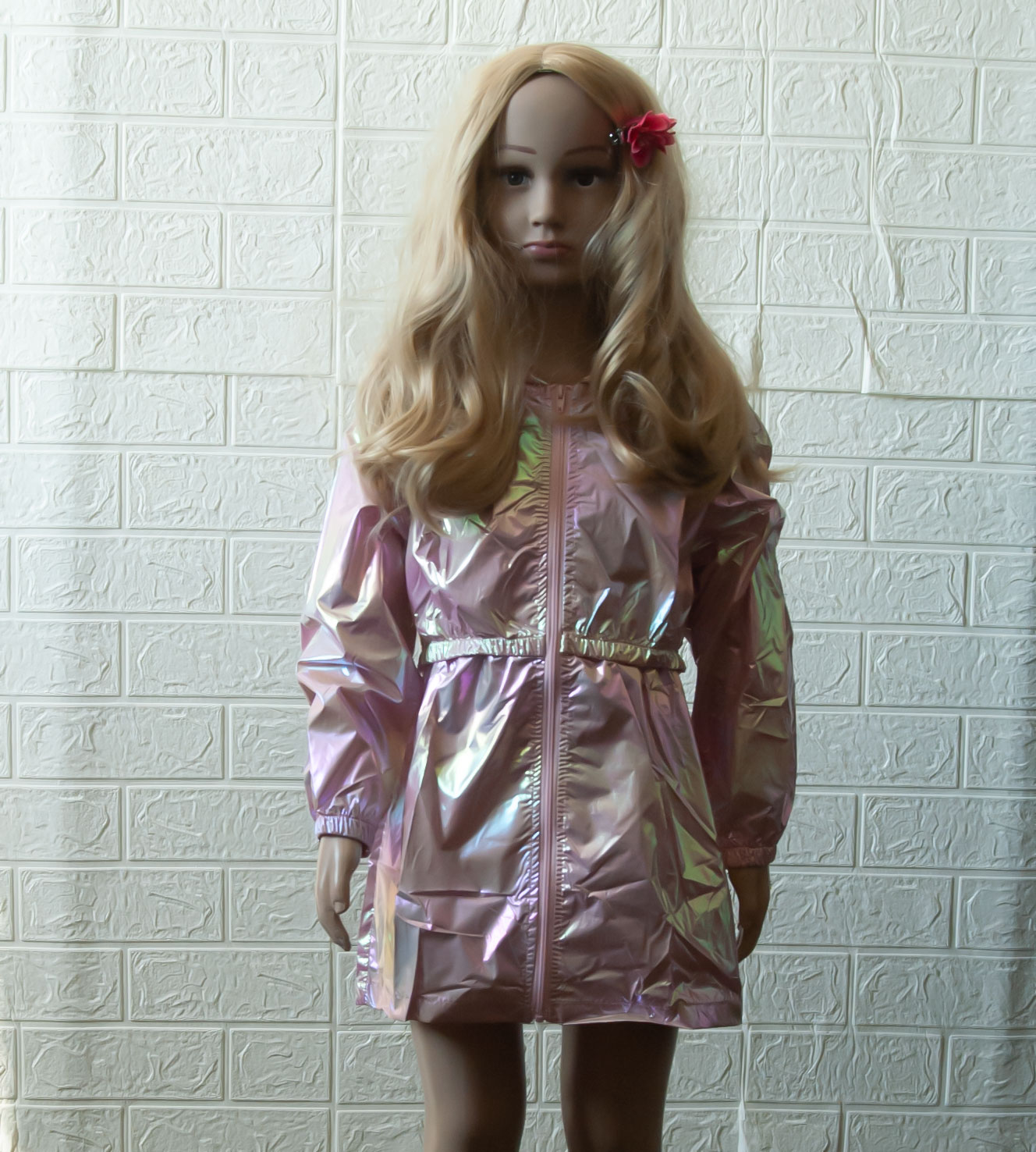 Jemná lehoučká parka, vel. 116 (5-6 let). Vůbec jí na sobě necítíte, je jako pavučinka. Zapínání na zip, bez kapes, bez podšívky. Rukávy jsou zakončeny nabíranou gumou. Kapuce je přišitá napevno. V pase je nabíraná guma, která tvoří horní a spodní díl, typu kabátek. Barva je metalická růžová (hází duhové odlesky). Slušivá, krásná, ideální na letní dny na šaty nebo jarní/podzimní teplé dny, kdy se počasí rychle střídá. Téměř nic neváží, je skladná, takže se krásně dá složit i do batůžku nebo kabelky pro případný déšť nebo vítr. Pro představu na fotce figurína holčička Elza (5 let; výška 110 cm; míry Elzy: obvod hrudníku 55,5 cm, obvod pasu 50 cm, obvod boků 60 cm), má na sobě velikost 110. NOVÉ originálně balené zboží, připravené k okamžitému odeslání.