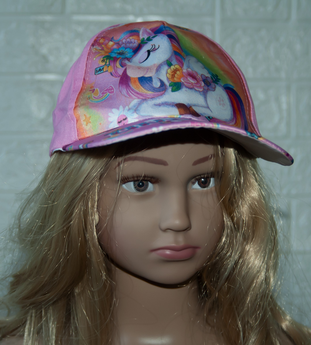 Růžová kšiltovka s jednorožcem, duhou a květinami. Jednotná velikost, dle obvodu hlavy. Vzadu zapínání na suchý zip. Pro představu na fotce figurína holčička Elza 5 let, výška 110 cm (míry Sophie: obvod hlavy cca 50 cm), má nasazenou kšiltovku bez stažení zadního pásku. NOVÉ originálně balené zboží, připravené k okamžitému odeslání.