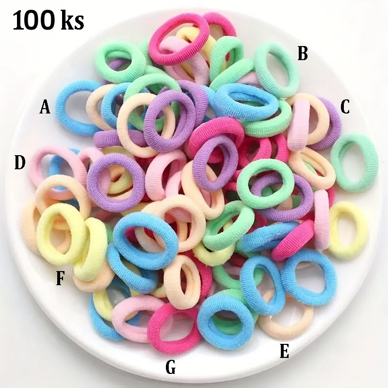 Elastické malé gumičky do vlasů, které dobře drží. Jsou hebké, sametové s leskem, 7 odstínů krásných barev. Cena je uvedena za celou originální sadu 100 ks. Zboží je originálně baleno. Pokud byste chtěli pouze konkrétní barvu/barvy a určitý počet kusů, lze prodat i jednotlivě a libovolně barevně namíchat. Prodej po kuse vychází 0.5.-/ks = 1.-/pár (2ks). Jedná se o nový produkt originálně balený, připravený k okamžitému odeslání.