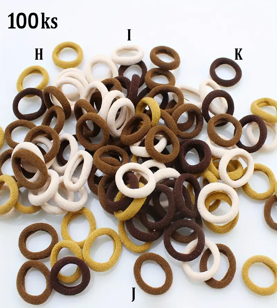 Elastické malé gumičky do vlasů, které dobře drží. Jsou hebké, sametové s leskem, 4 odstíny v barvách druhů kávy. Cena je uvedena za celou originální sadu 100 ks. Zboží je originálně baleno. Pokud byste chtěli pouze konkrétní barvu/barvy a určitý počet kusů, lze prodat i jednotlivě a libovolně barevně namíchat. Prodej po kuse vychází 0.5.-/ks = 1.-/pár (2ks).