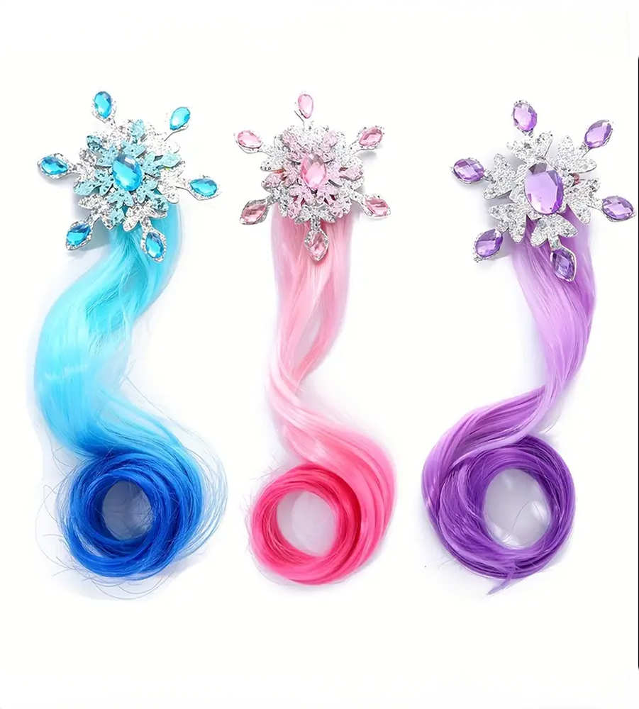 Magické sponky s broží pro ženy a dívky na culík, do copu nebo jen tak do rozpuštěných vlasů. Pramen je umělý z mikrovlákna s hedvábným dotekem, upevnění na klasickou svorku. Během chvilky vytvoříte nepřehlédnutelný účes bez poničení vlasů, což se dá využít na veškeré společenské události (svatby, karnevaly, oslavy, focení atd.). Vhodné pro všechny ženy (matky a dcery), nejen pro děti. Sponky jsou lehké (netíží a netáhnou dolů), zespodu vypolstrované a měkké. Cena je uvedena za sadu 3 ks. V nabídce mám i možnost zakoupit jednotlivě 59.-/ks. Barvy: tyrkysová, plameňáková, fialková. Jedná se o nový produkt originálně balený, připravený k okamžitému odeslání.
