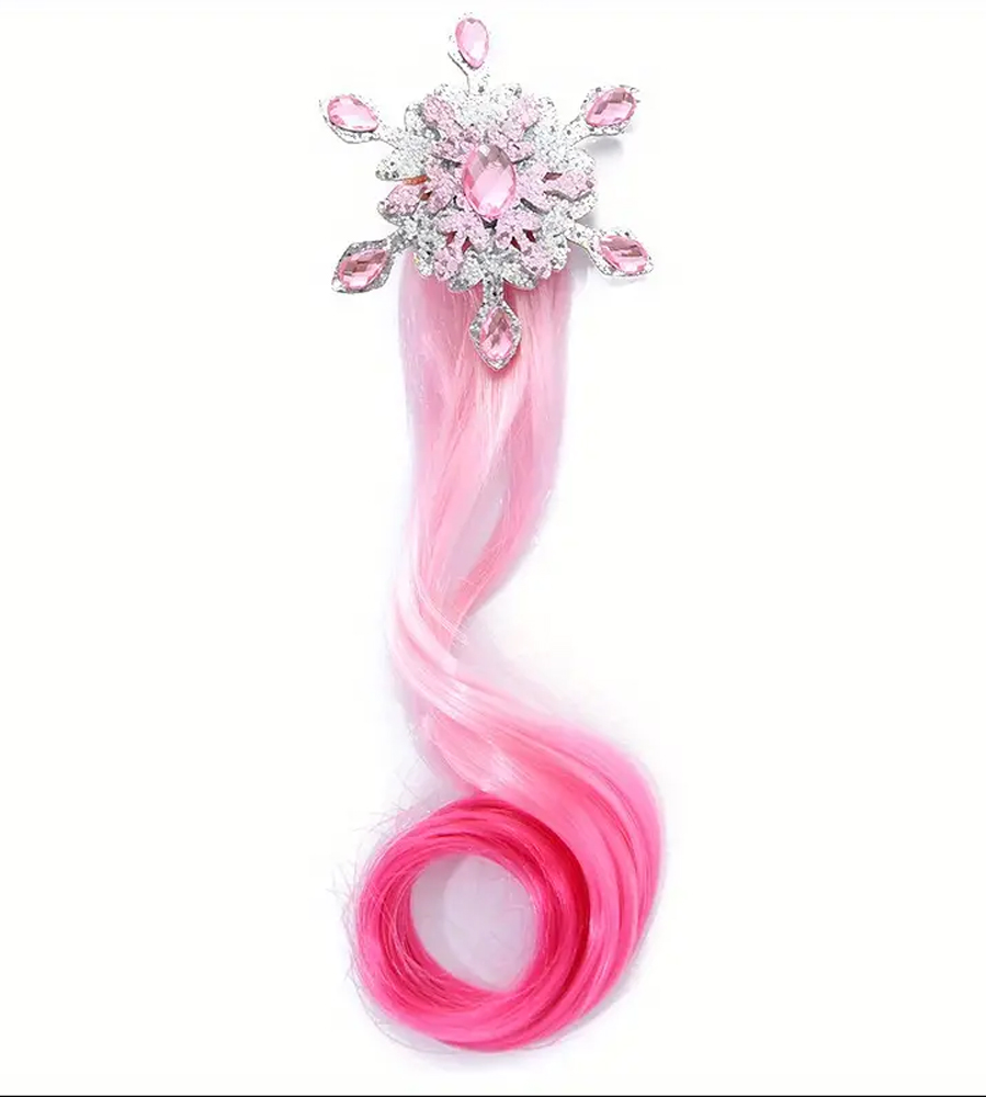 Magická sponka s broží pro dívku na culík, copánek nebo jen tak do rozpuštěných vlasů. Pramen je umělý z mikrovlákna s hedvábným dotekem, upevnění na klasickou svorku. Během chvilky vytvoříte nepřehlédnutelný účes bez poničení vlasů, což se dá využít na veškeré společenské události (svatby, karnevaly, oslavy, focení atd.). Vhodné pro všechny ženy (matky a dcery), nejen pro děti. Sponka je lehká (netíží a netáhne dolů), zespodu vypolstrovaná a měkká. Cena je uvedena za 1 ks. V nabídce mám i možnost zakoupit 3 ks za 129.-. Barva této brože je růžová. Jedná se o nový produkt originálně balený, připravený k okamžitému odeslání.