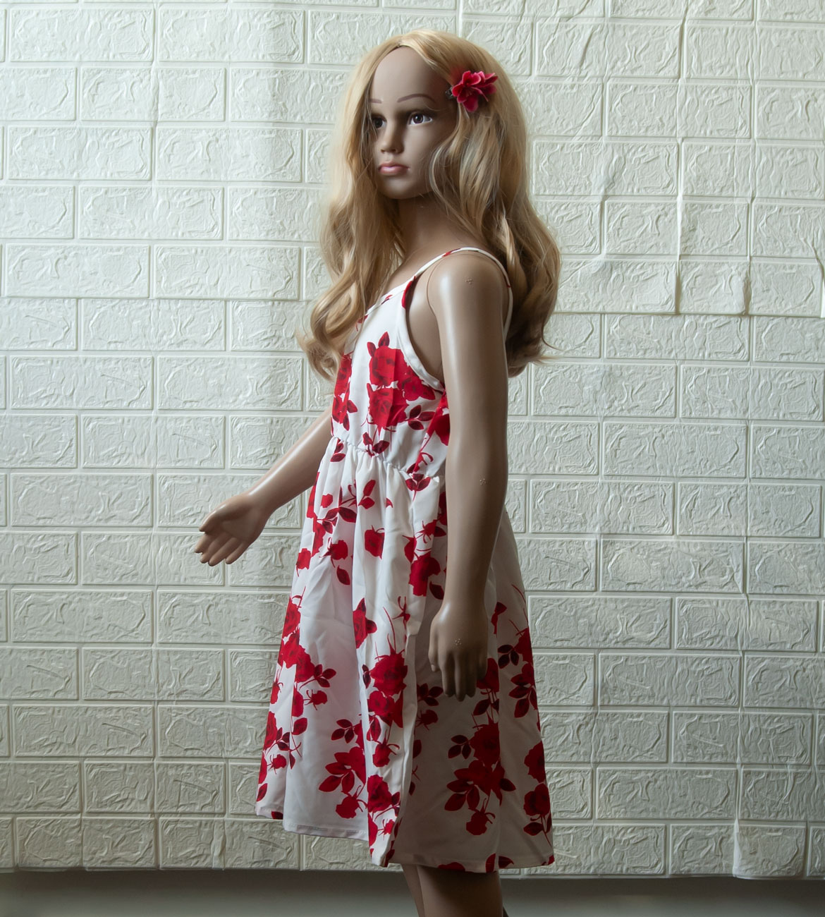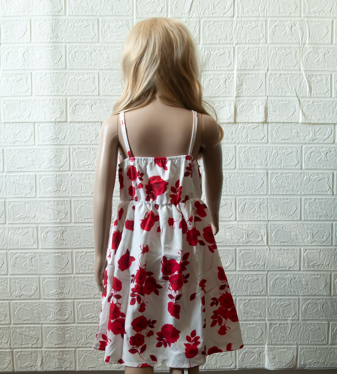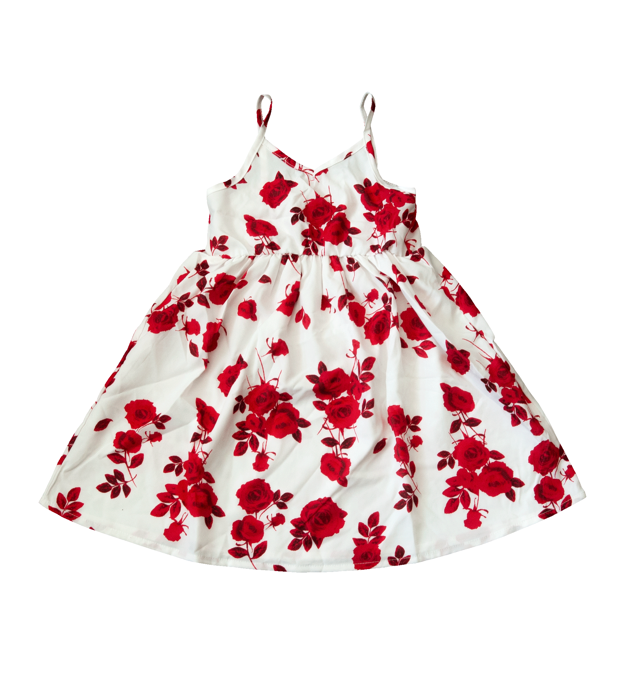 Šaty vel. 116 (5-6 let), na úzká ramínka, jsou jednoduché, vpředu mírný výstřih do véčka, vzadu kolem zad nabíraná (žabičková) gumička, aby dobře seděly, pod prsy též tenká gumička po celém obvodu, která šaty dělí na horní a spodní díl, střih A (směrem dolů se rozšiřují). Šaty jsou lehoučké jako pavučinka z velice příjemného materiálu, který na těle ani necítíte. Letní design červených růží na bílém podkladu. Pro představu na fotce figurína holčička Elza 5 let, výška 110 cm (míry Elzy: obvod hrudníku 55,5 cm, obvod pasu 50 cm, obvod boků 60 cm), má na sobě velikost 116, je vidět, že jí jsou šaty větší. NOVÉ originálně balené zboží, připravené k okamžitému odeslání.